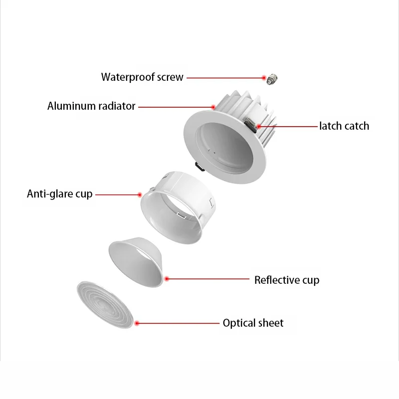 Modern Aluminum LED Downlight Recessed Deep-cup Anti-glare Waterproof Indoor IP65 Full-spectrum Protection Light 36W 3000-4000K