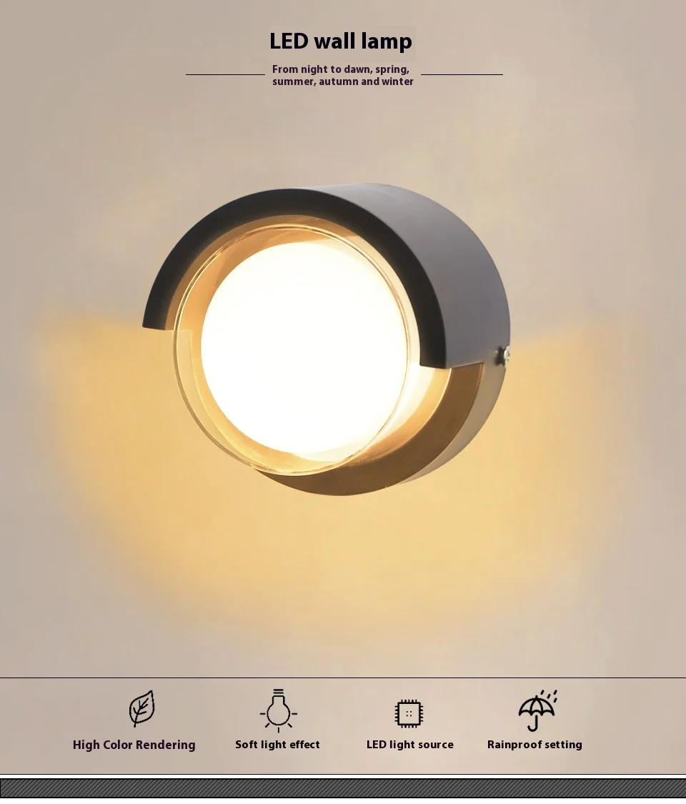Round Outdoor Sconce Lights, Low Profile Outdoor Porch Lighting, Modern Light Fixtures, 12W for Patio, Deck(6 Inch)