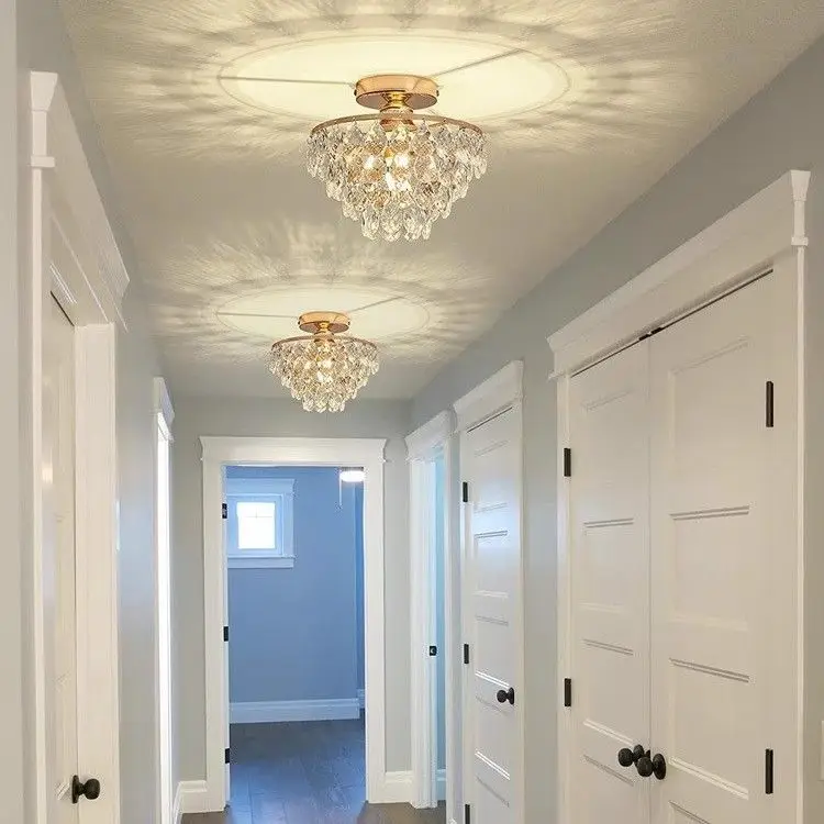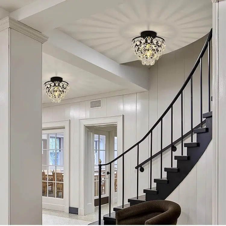 KACKSUN Modern Design Vintage Crystal Ceiling Light for Living Room Surface Mounted with LED Bulb Stainless Steel Base