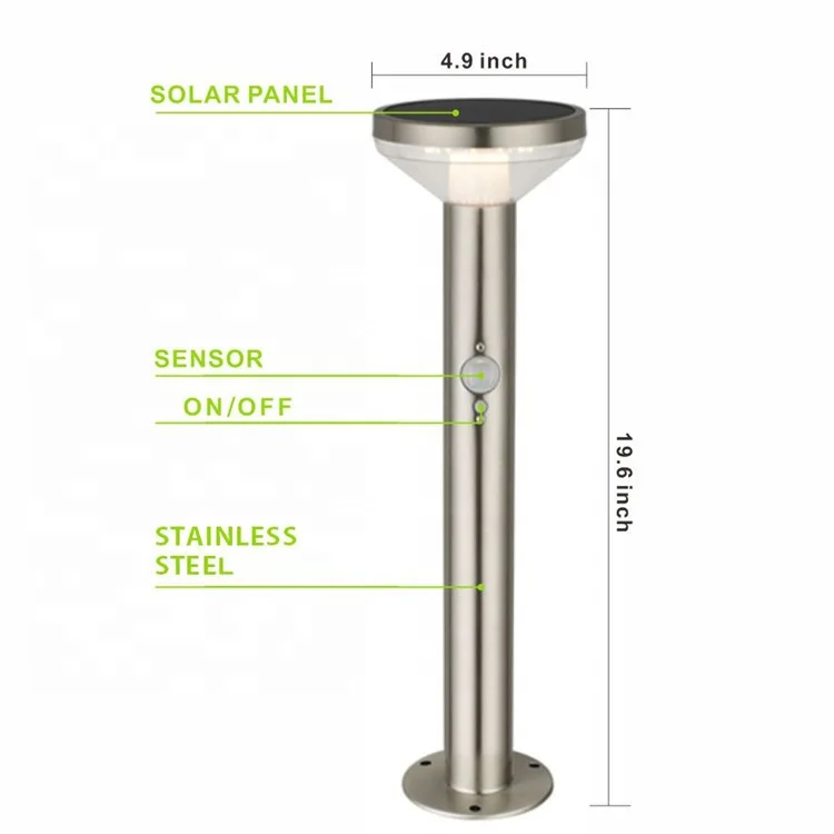 Vertak 600lm IP44 Waterproof Outdoor Led Lamp Stainless Steel Solar Led Post Light