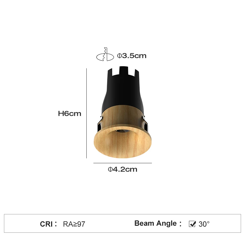 Cut Out 35MM 5W Recessed Aluminum COB LED 15° 24° 36° Spotlight Log Color 3000K/3500K/4000K Vintage Style Indoor Downlight