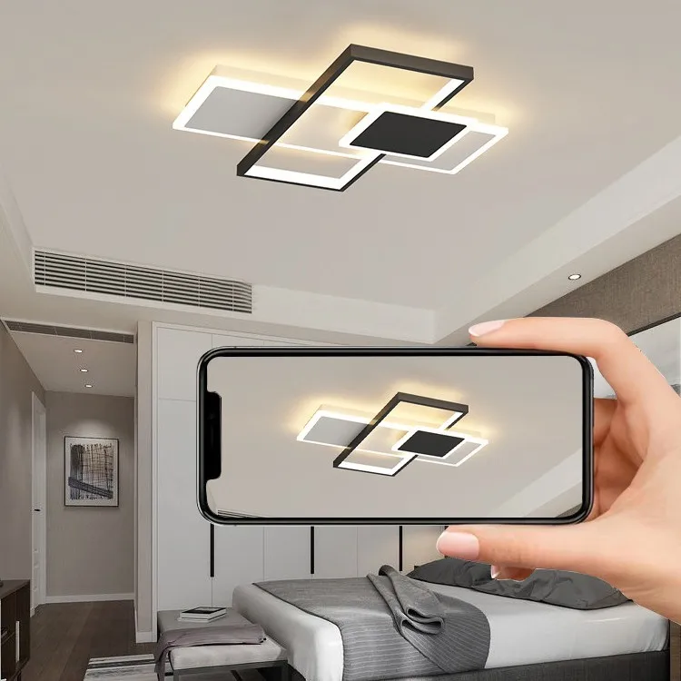 JACKSUN High Quality Dimmable AC 110V-220V Square Iron Acrylic Modern Led Ceiling Lights Living Room Study White Ceiling Lamp