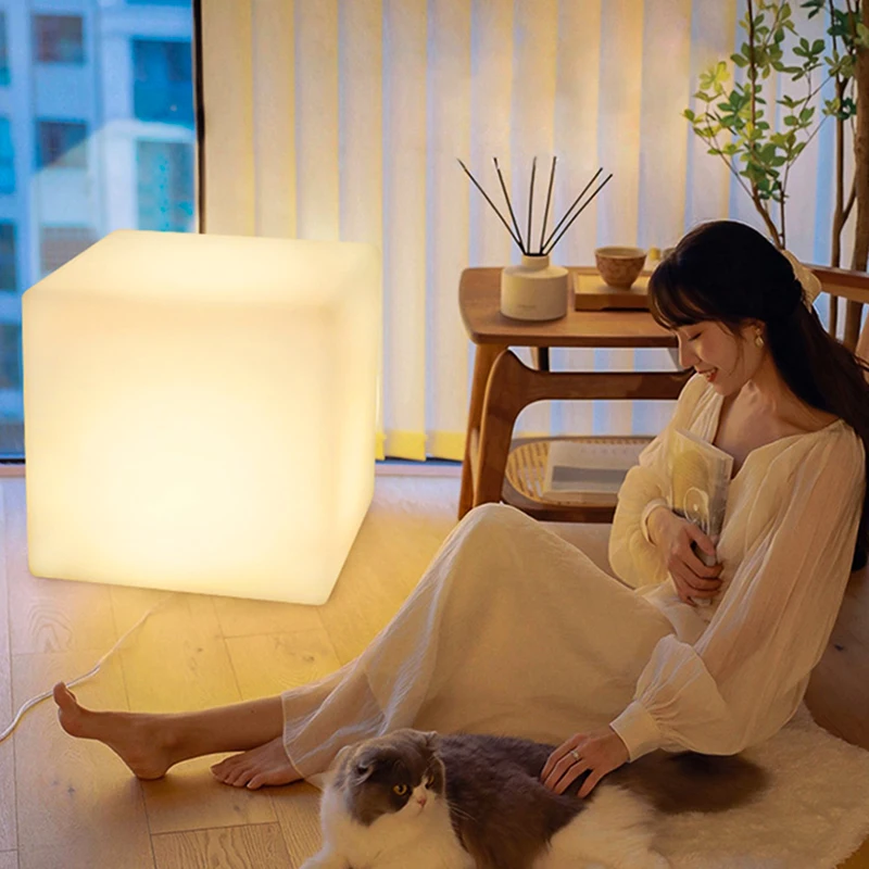 Creative Indoor LED Floor Lamp Natural Cube Style for Living Room Tea Room Club Home Lighting with Remote Control