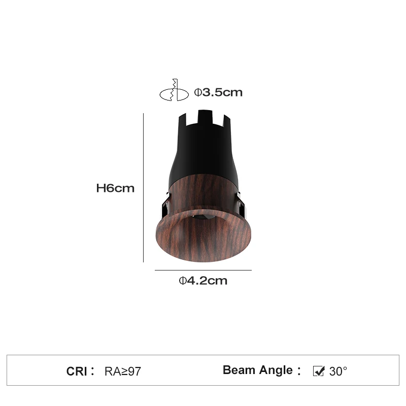 Cut Out 35MM Recessed Aluminum LED Spotlight Walnut Brown 3 Colors Ra>97 Vintage Style Indoor Downlight with 10-Year Warranty
