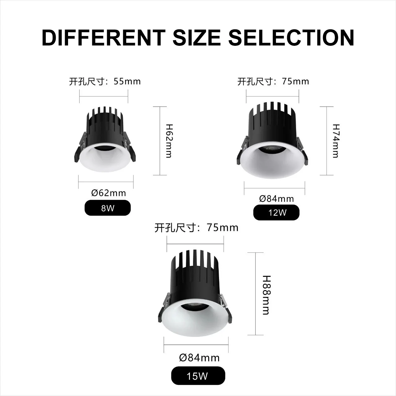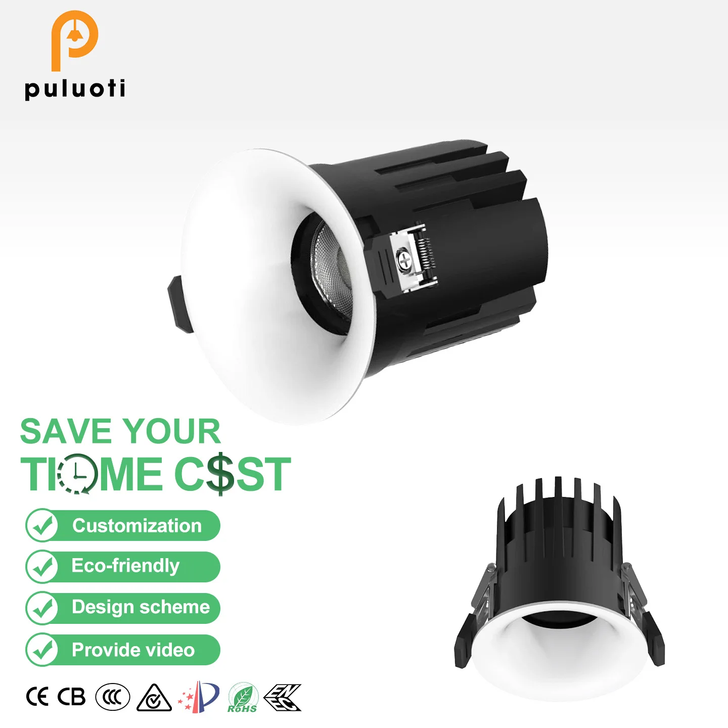 PULUOTI 12W 24° 75mm Adjustable Arc IP20 Recessed LED Ceiling Light Modern Style Aluminum Body Spotlight White L84mm*H74mm