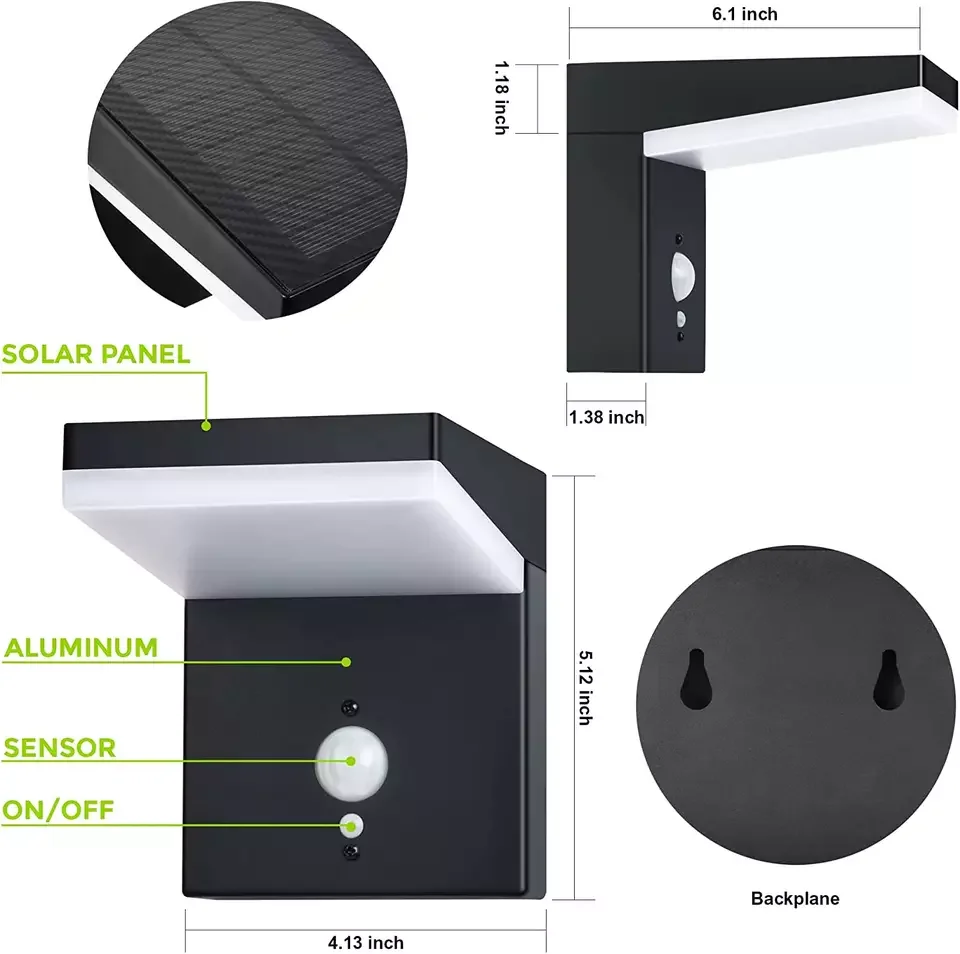Vertak Aluminium Patio Outside Wall Lights Yard Contemporary Solar Led Garden Light with Solar Panel
