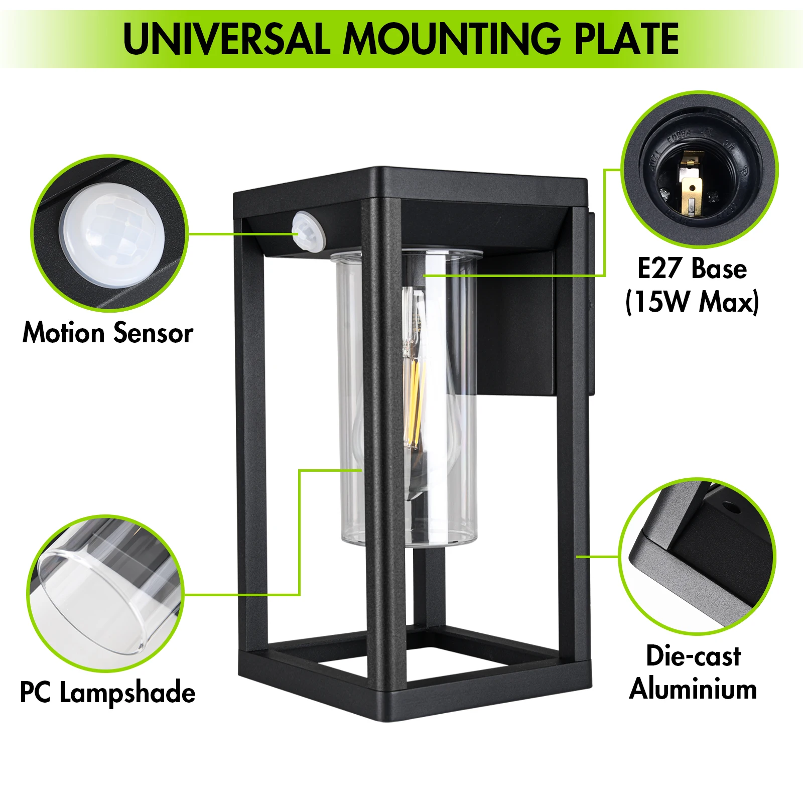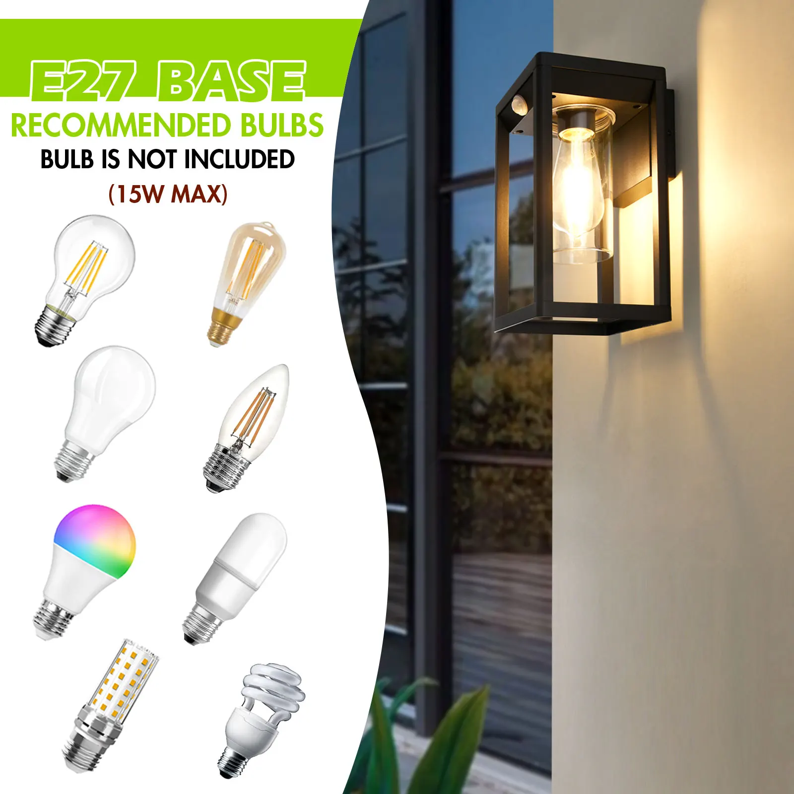 Vertak 15W IP44 Black Die-cast Aluminum Outdoor Wall Lamp Waterproof LED Bulb Rectangle E27 Wall Light Exterior Mounted