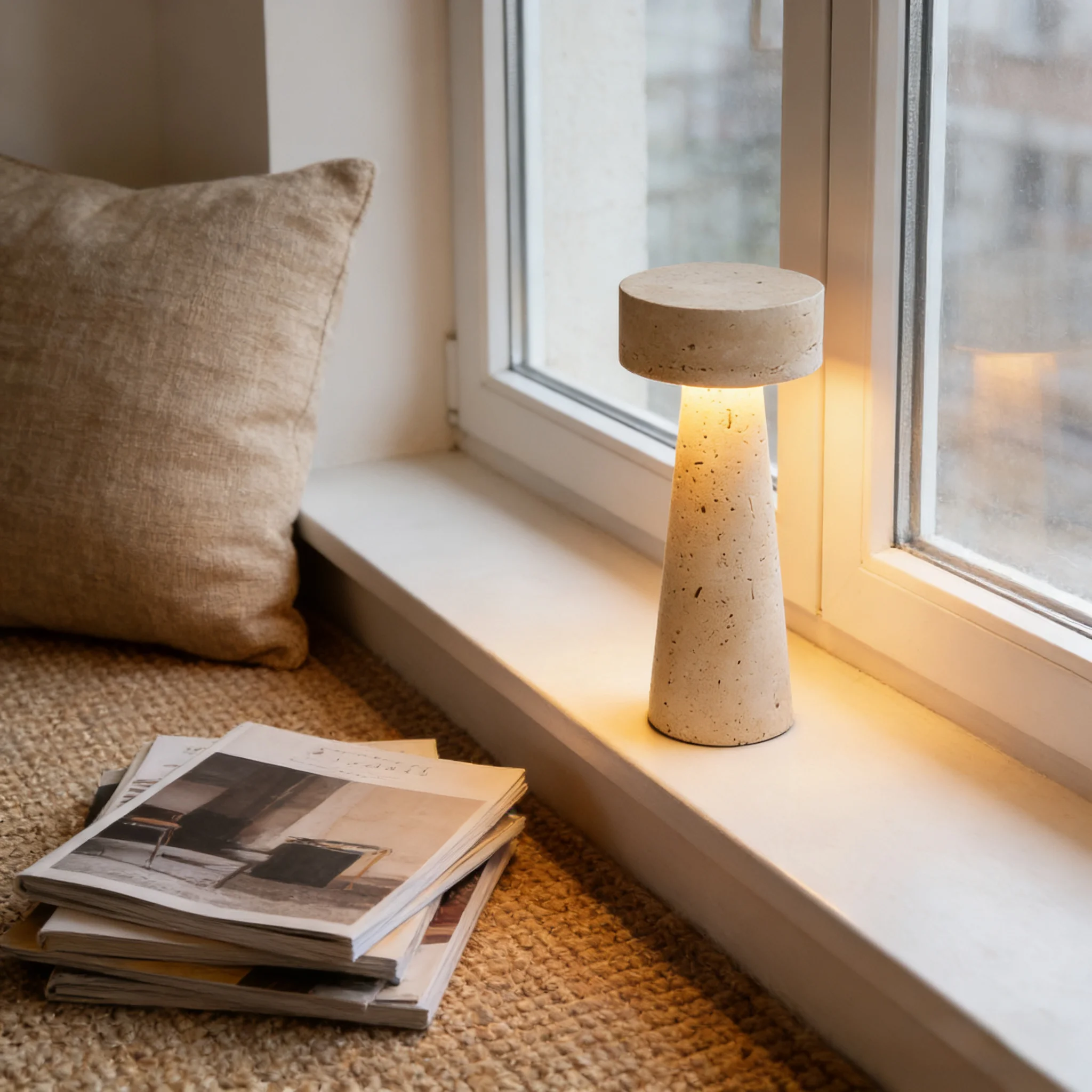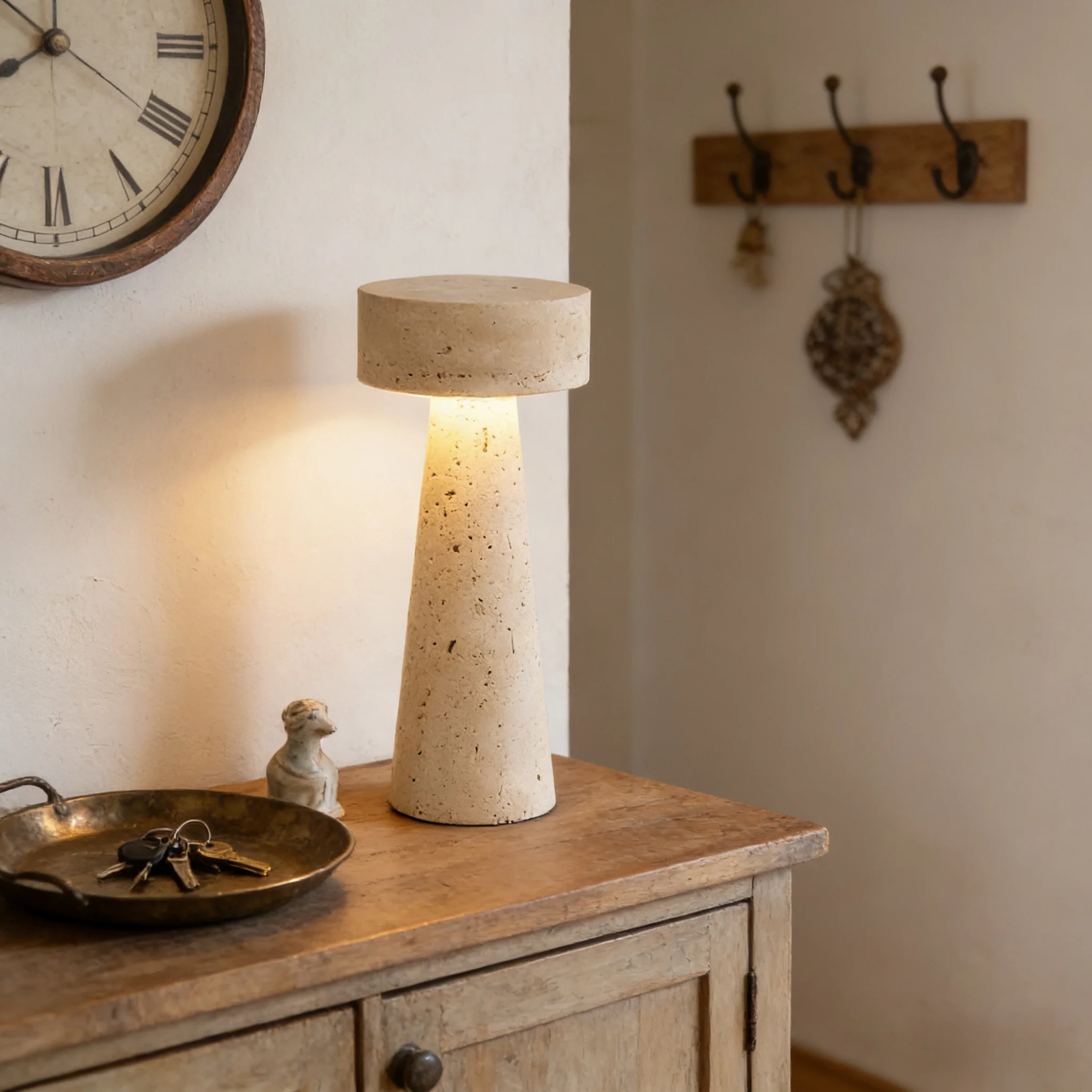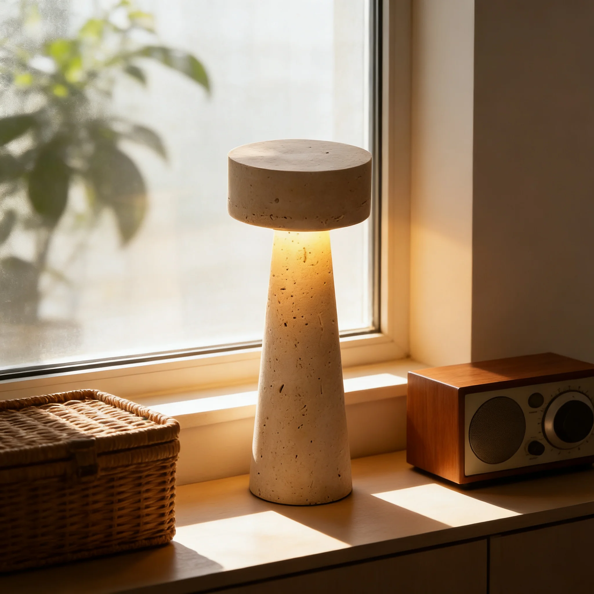 JACKSUN Wabi-Sabi Natural Yellow Cave Stone Table Lamp Japanese Table Light Vintage Travertine Solid Bedside Lamp 30cm 110-220V