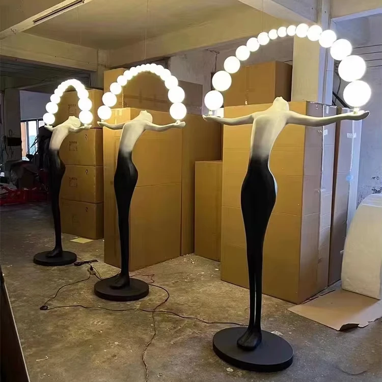 JACKSUN Hotel Art Large LED Resin Cabochon Floor Lamp Girl Holding Air Balloon Decor Human Sculpture Floor Lamp 2.3 Meter