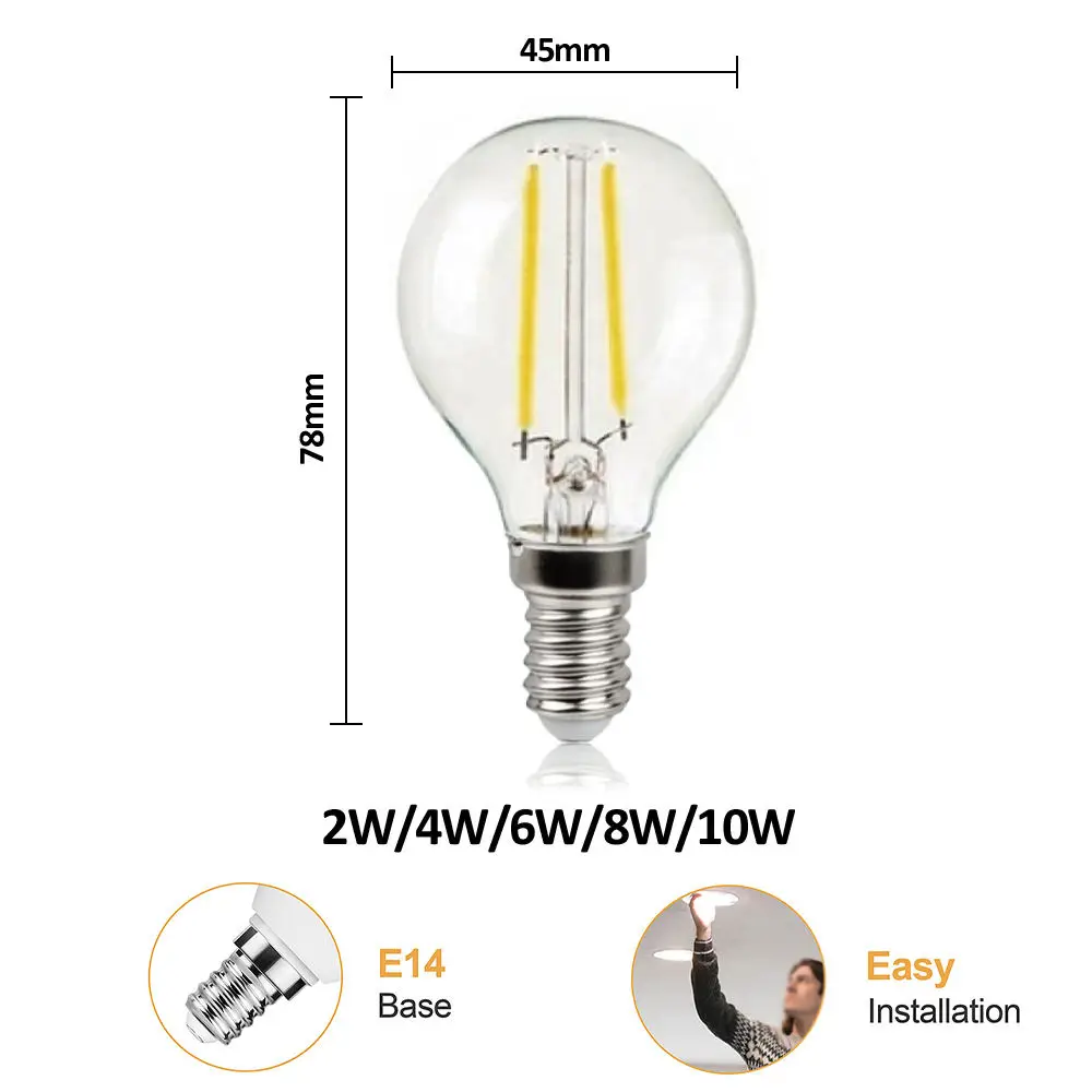 Vertak No Flicker 3000K Led Filament Bulb 2W 4W 6W 8W 10W Glass Indoor Vintage Led Bulb