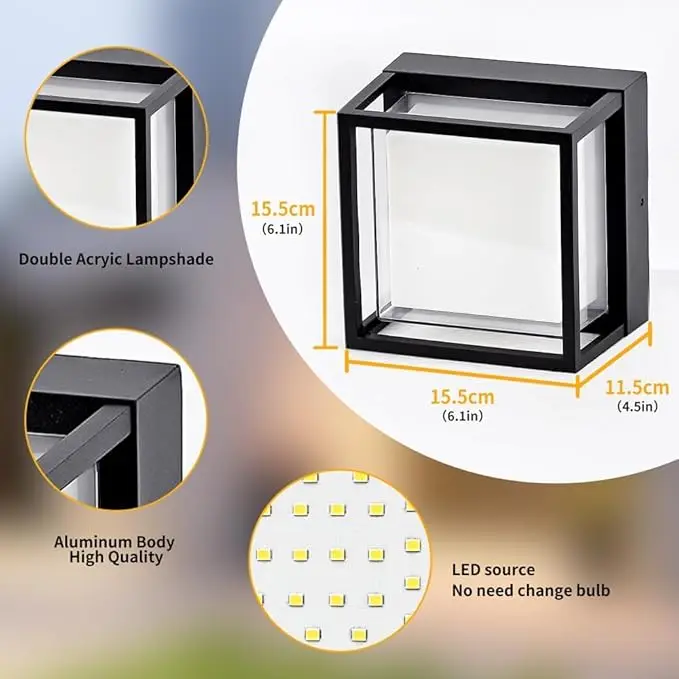 LED Modern Outdoor Square Wall Sconce Light Bright Porch Patio Lights, IP65 Waterproof Exterior Lighting for House Front Door