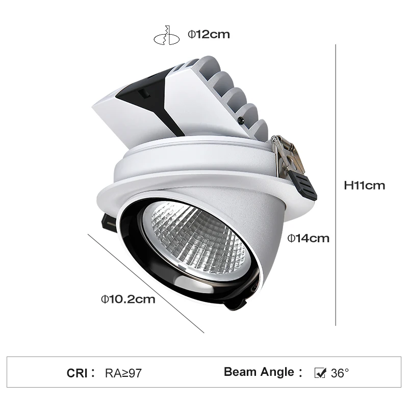 Superbright 36W Cut 120mm LED Spotlight Dimmable Elephant Trunk Lamp with CCT DALI Aluminum Body for Shopping Mall Exhibition