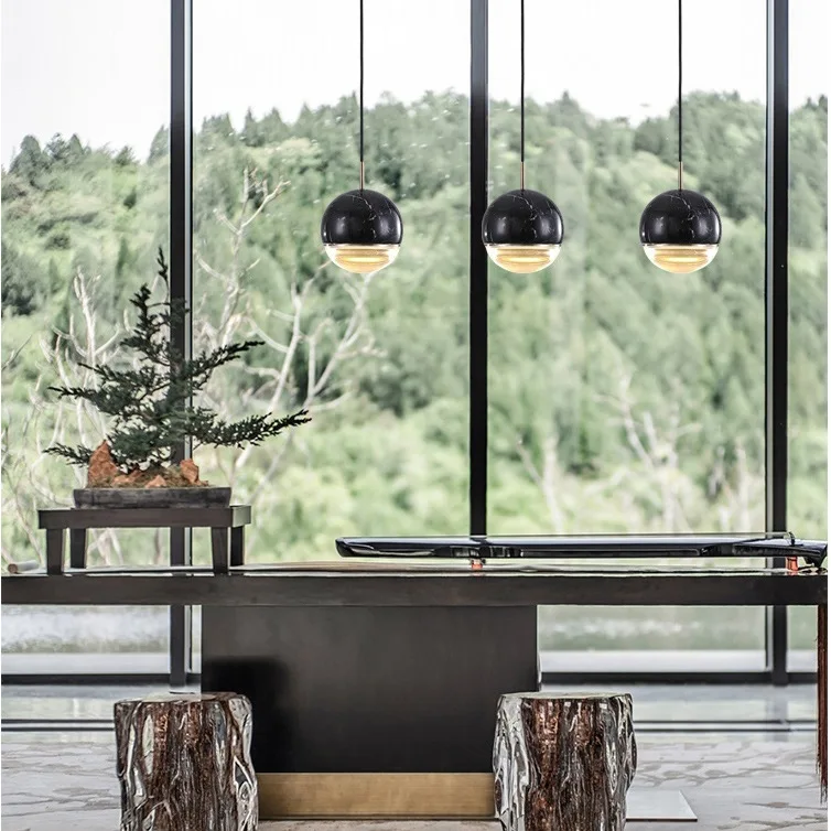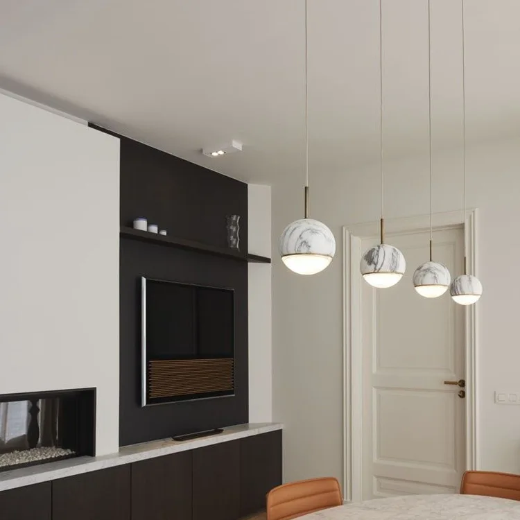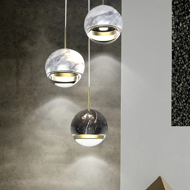 JACKSUN Nordic Bar Counter Marble Single-Head Pendant Light Bedside Pendant Light with Long Cord for Bar Counter Kitchen Island
