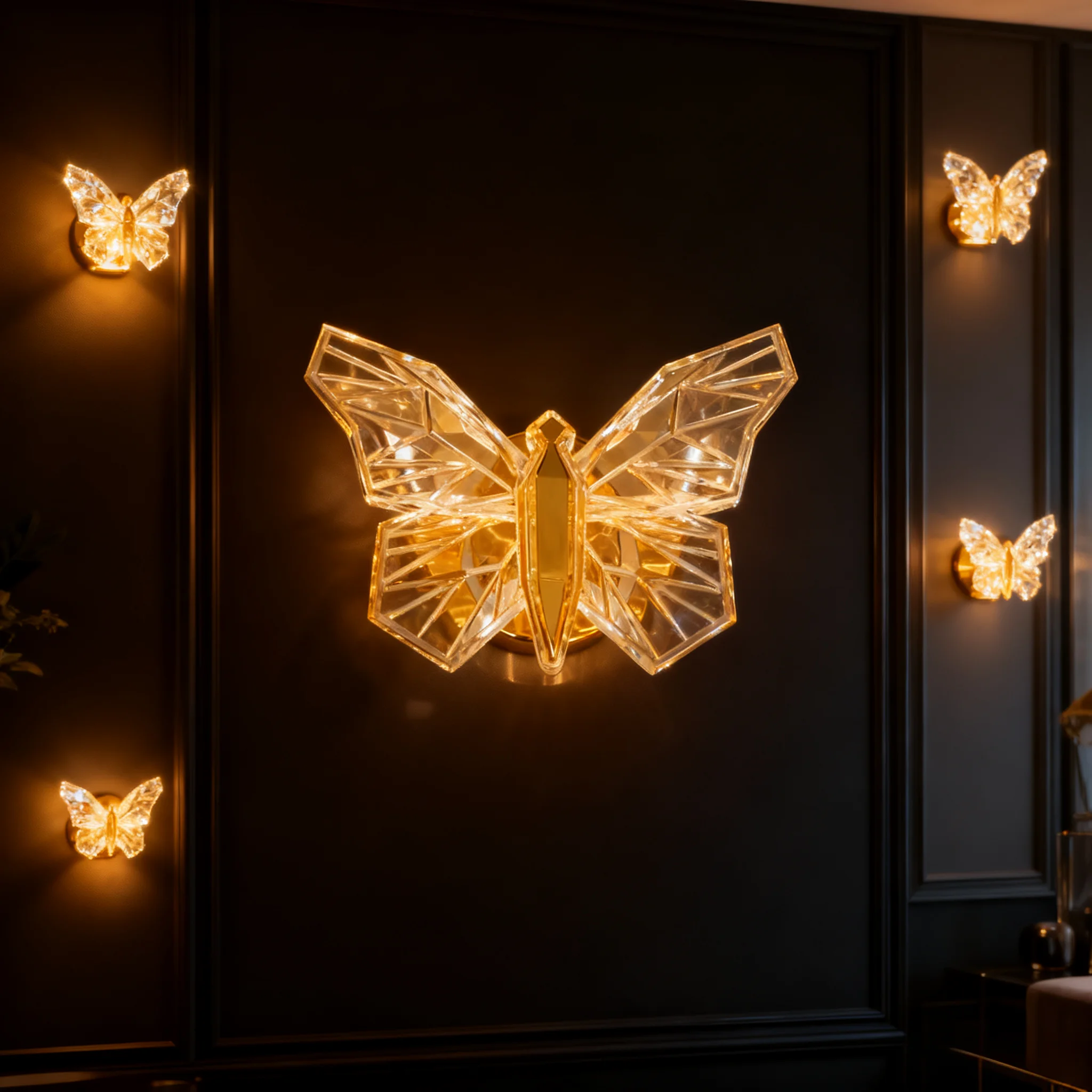 JACKSUN LED Nordic Gold Led Butterfly Wall Lamp Acrylic Lighting Fixture Background Bedside Small Mid Century Wall Sconce