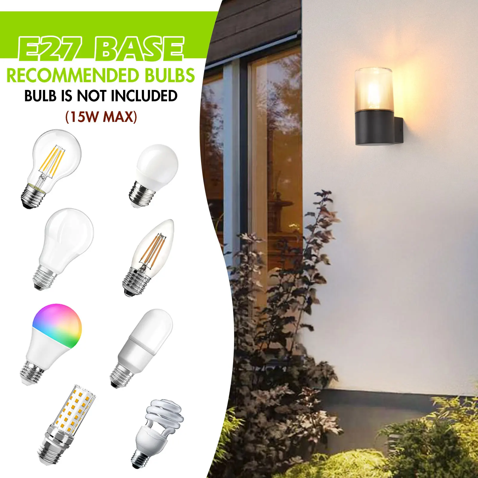 Vertak 15W Warm White LED Wall Lamp E27 Outdoor Garden Light Waterproof Aluminum Square Powered Aisle Balcony Hot Sale Option