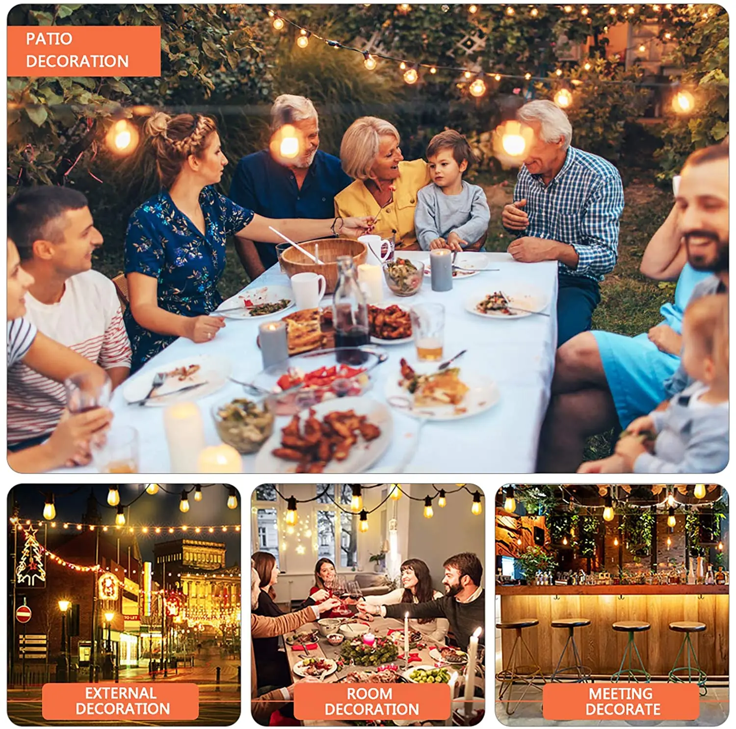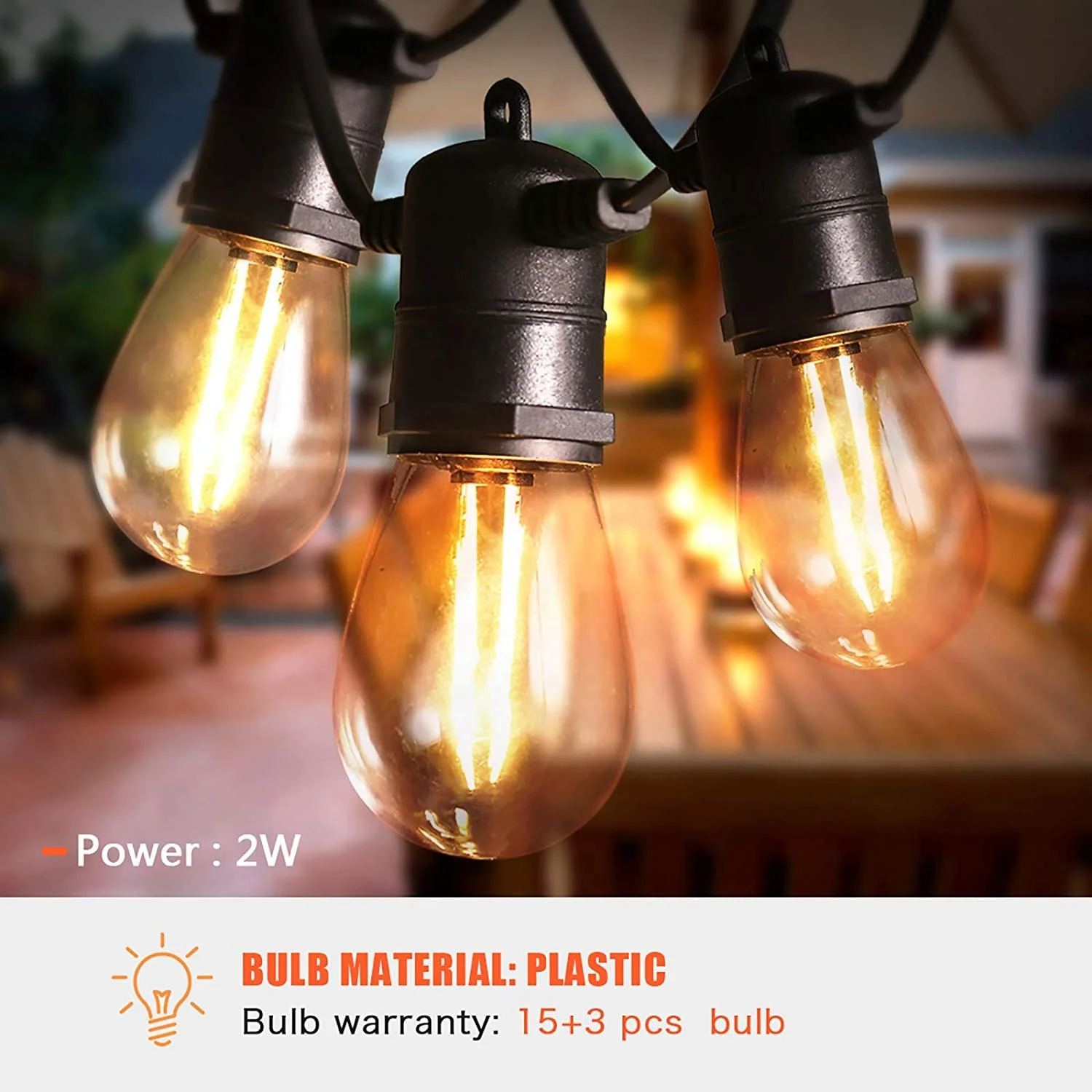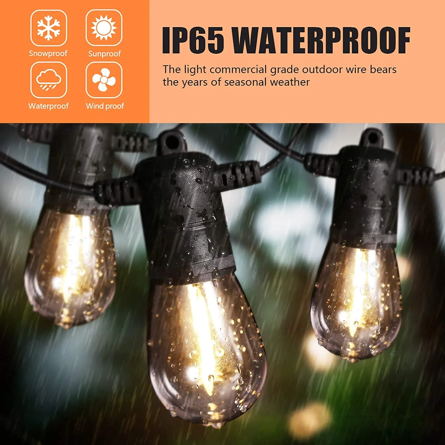 Vertak Christmas Garden Outdoor IP65 Waterproof Led String Lights Mains Powered Festoon Chandeliers Light