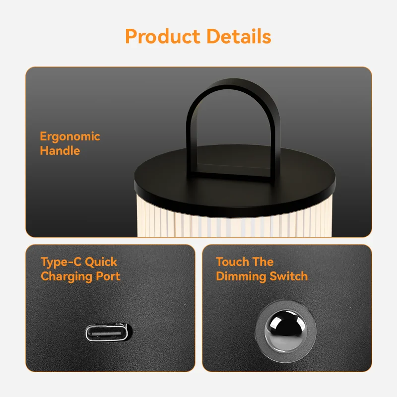 Rechargeable Modern Portable Metal Table Lamp with Touch Control Warm White LED Light for Home Decor Gift Lamp