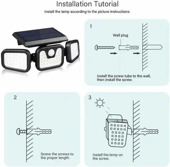 Vertak IP65 Waterproof Black Solar Security Lights Outdoor Powered Wall Lights Glass for Garden Pathway