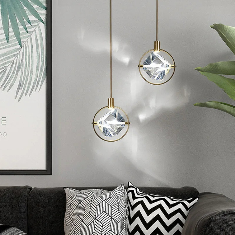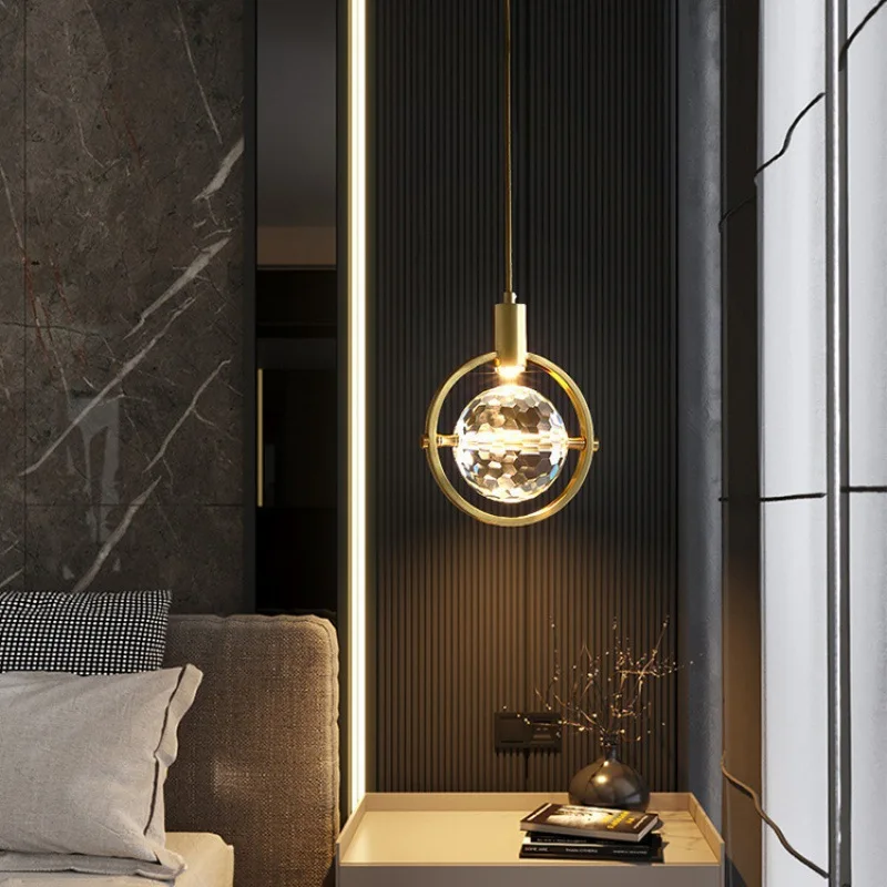 JACKSUN Nordic Bedside Small Copper K9 Crystal Pendant Light Luxury Bedroom Simple Restaurant Pendant Lamp