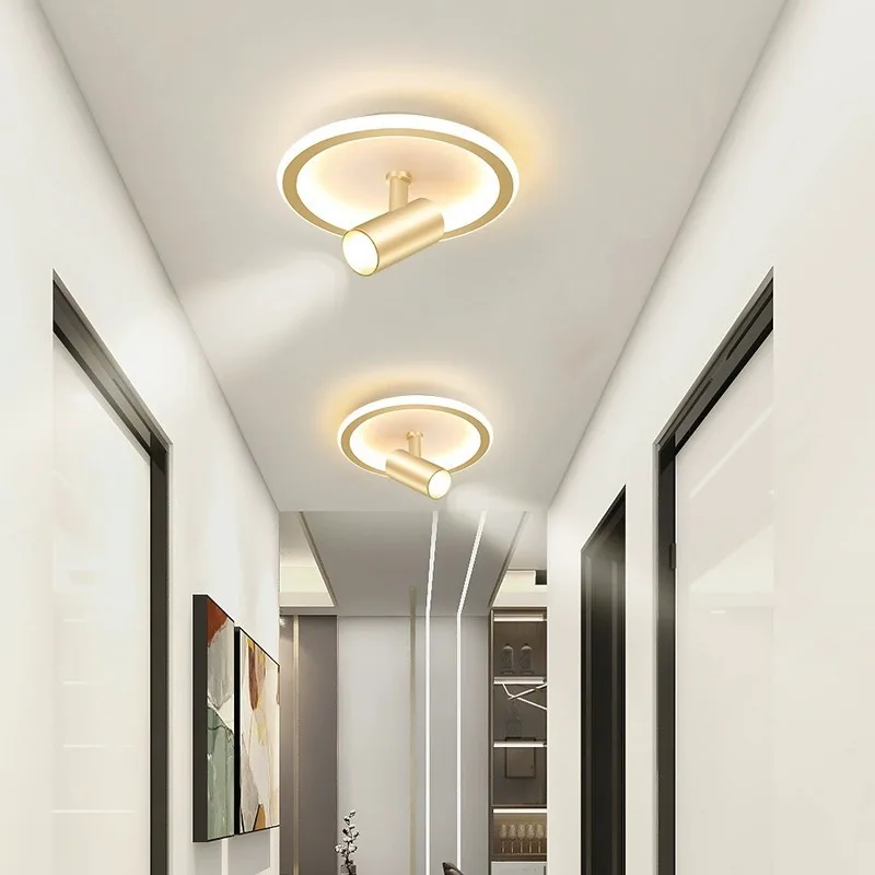 JACKSUN Modern Acrylic LED Spotlight Downlight Flush Mount Adjustable Gold Round Ceiling Lights for Aisle Corridor Foyer Hallway
