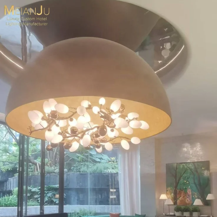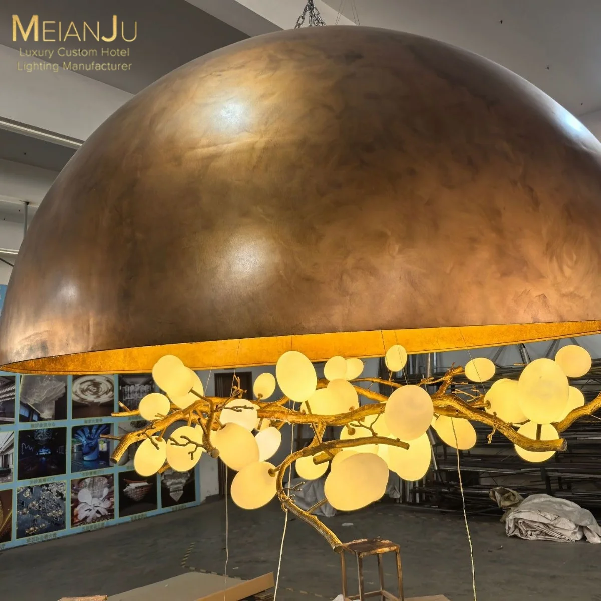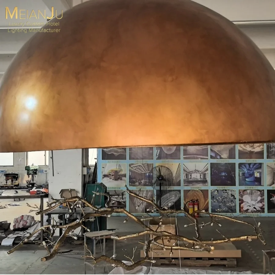 Custom Luxury Copper Cauldron Chandelier Adjustable Height LED Oversized Semi-Circular for Hotel Lobby Restaurant Villa Living