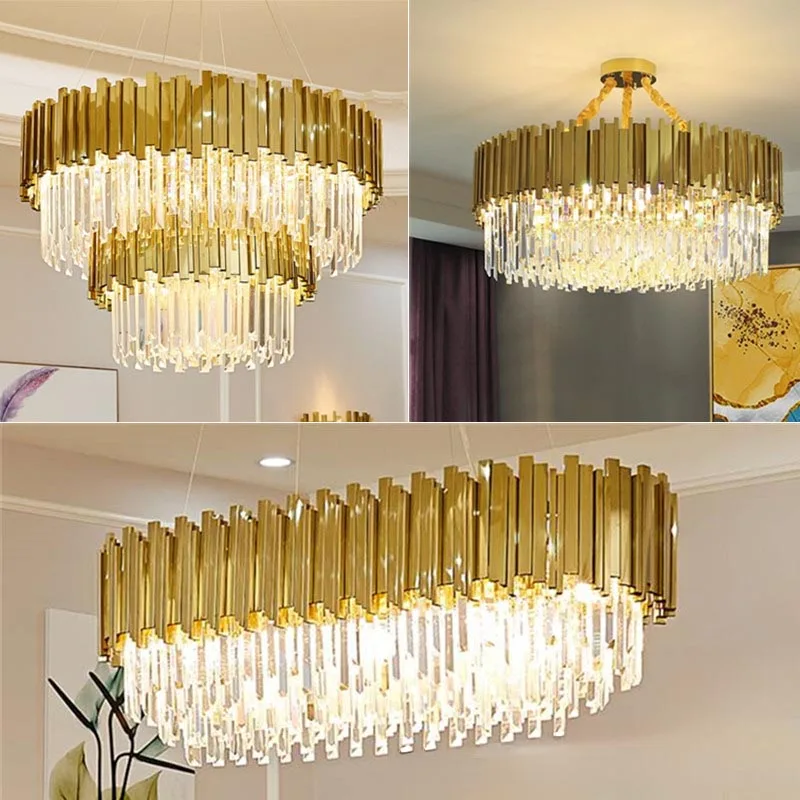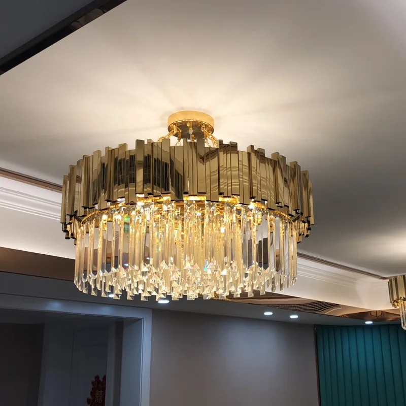 JACKSUN Luxury Modern Crystal Chandelier High Quality K9 Clear Crystal Living Room Home Rustic Pendant Lamps Round Hotel