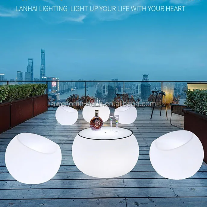 Beach Patio Chair Round Luminous Cocktail Table for Outdoor Event Bar Furniture