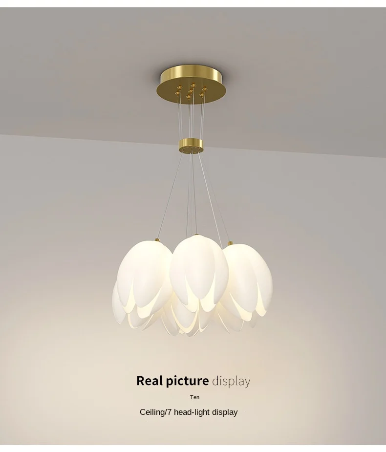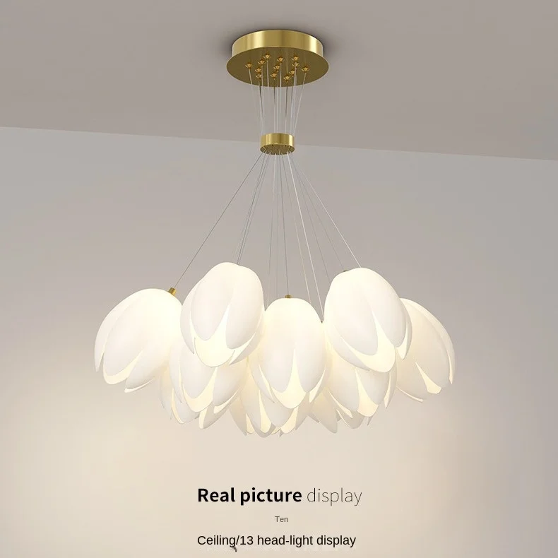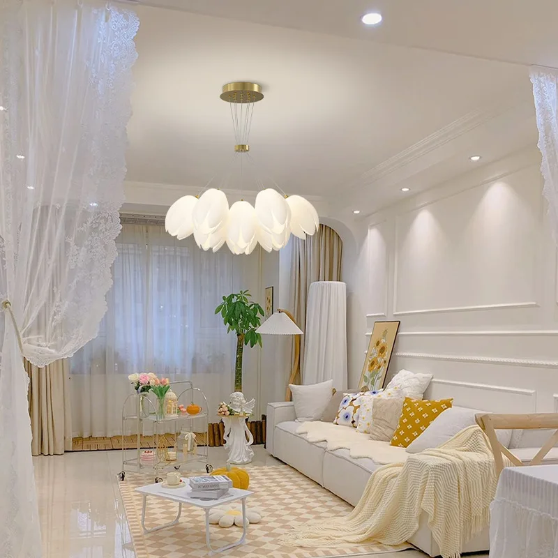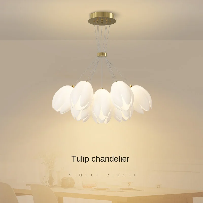 JACKSUN Nordic Style Cream Tulip Chandelier Romantic Iron Material Pendant Light for Master Bedroom New House Lighting