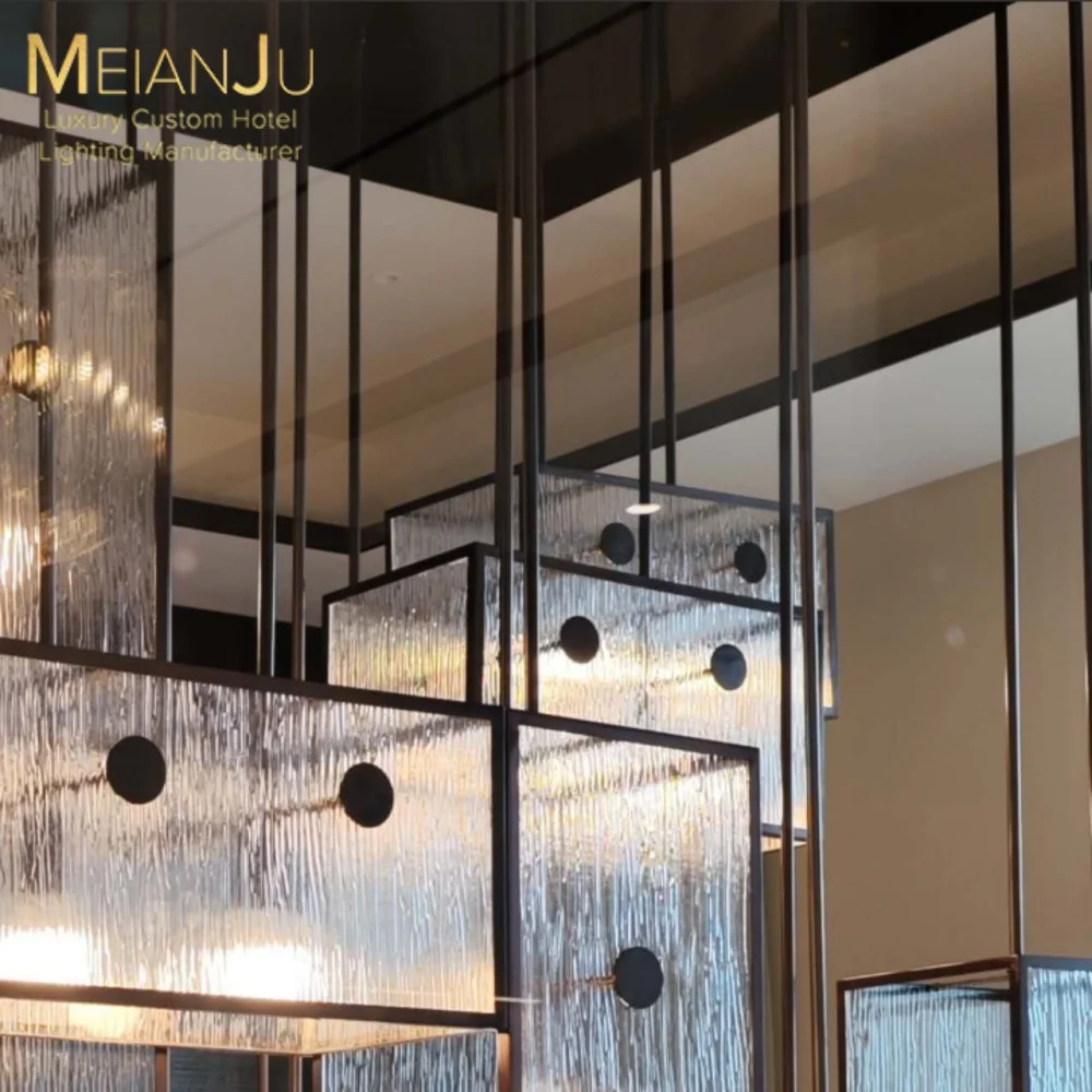 Zhongshan Customizable Multi-Color Pendant Light Ceiling Lamp Premium Stainless Steel Ripple Frosted Glass for Hotel Lighting