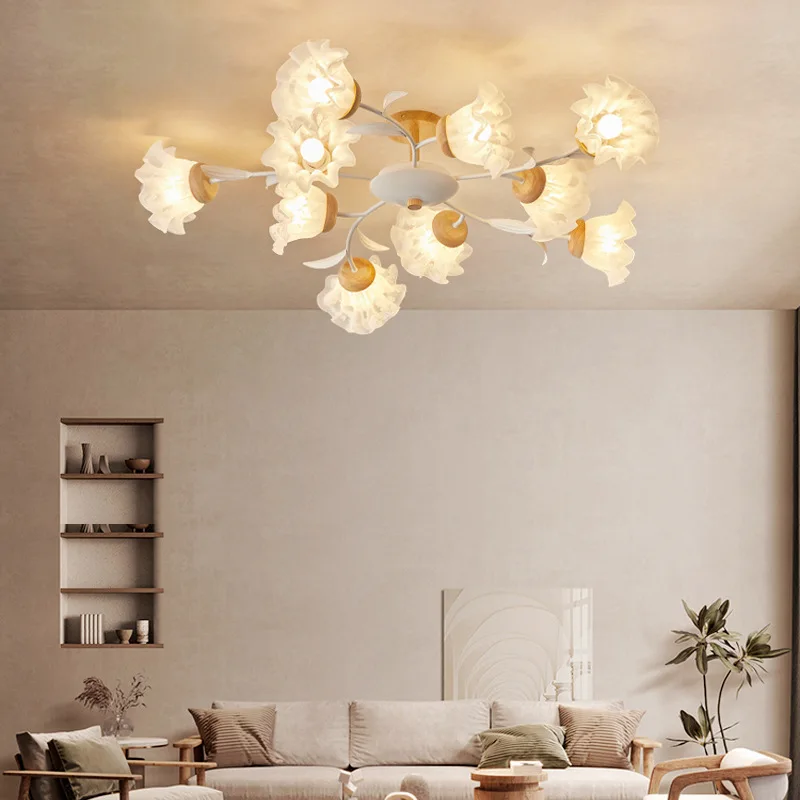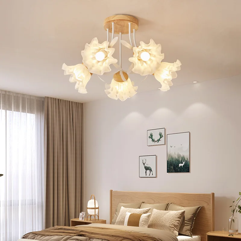 JACKSUN Japanese-Style Cream-Tone Lamp Bedroom Dining Lighting Wabi-Sabi Style Lily of the Valley Flower Pendant Light