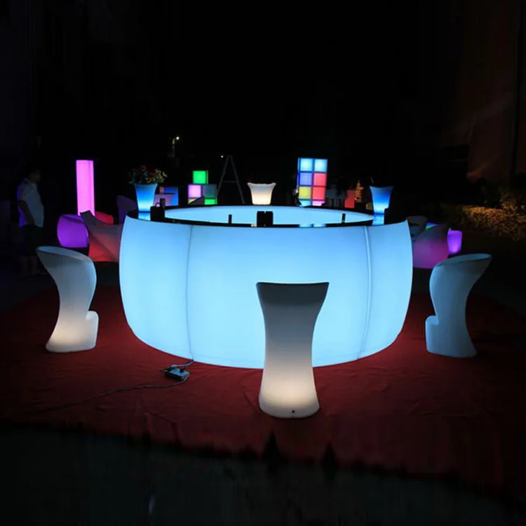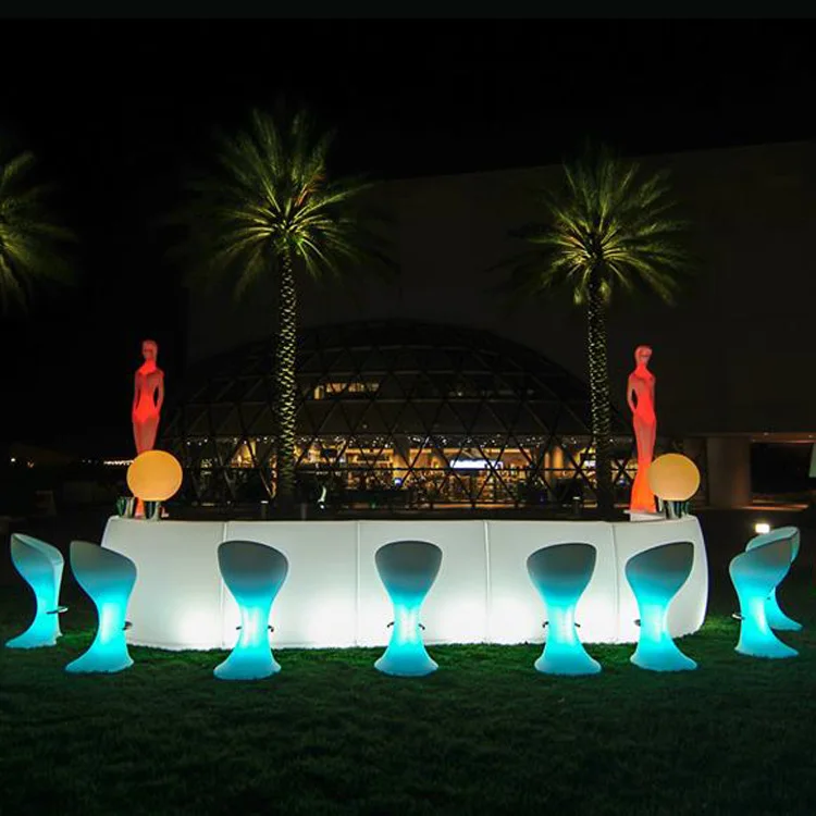 Modern Contemporary White Plastic LED Mobile Bar Portable Bar Counter for Home or Hotel Commercial Furniture Bar Tables