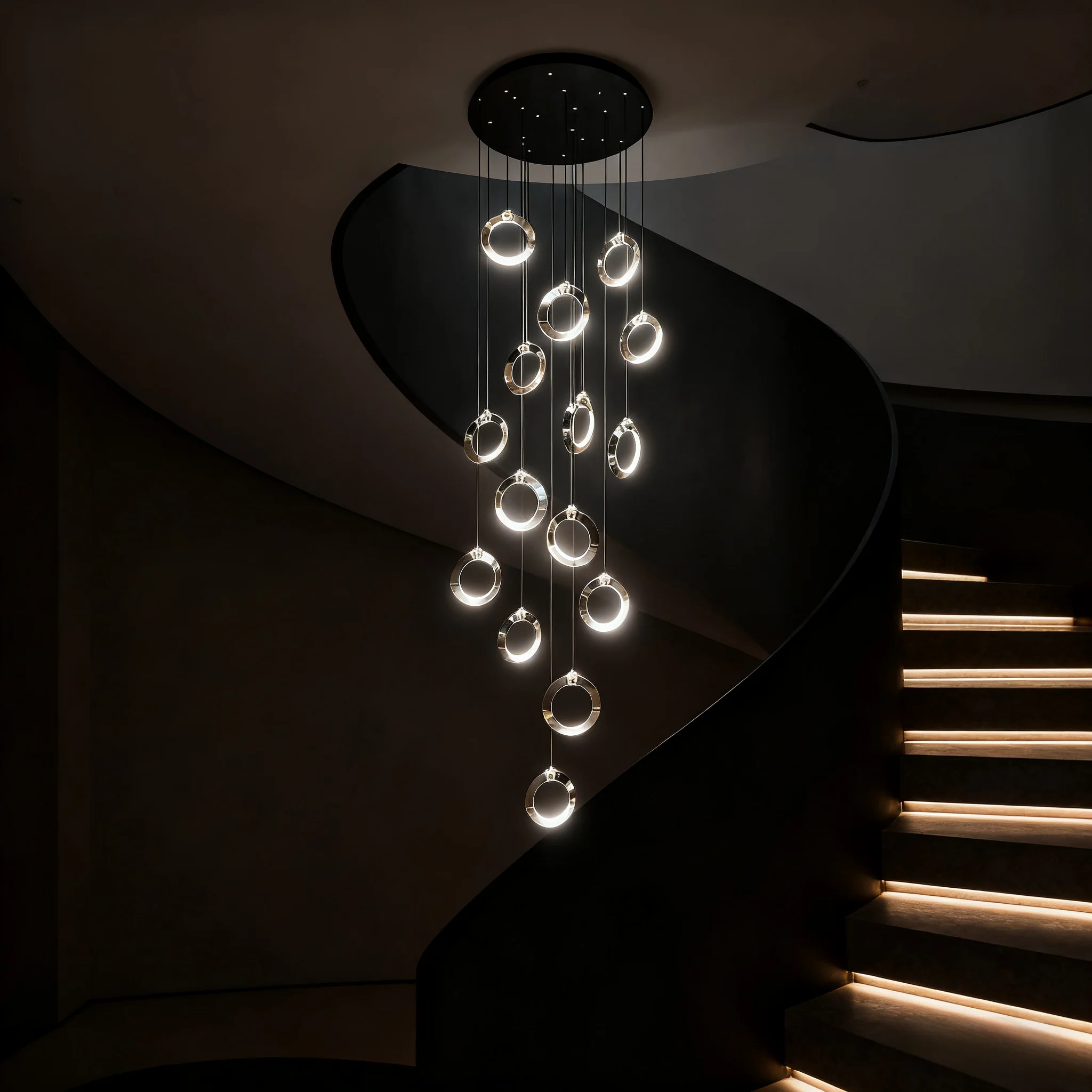 JACKSUN Luxury High Ceiling LED Large Chandelier Hotel Chandelier Staircase Chandelier Hanging Lighting Villa Stair Chandelier