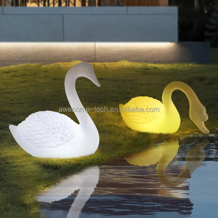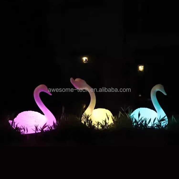 Led Wireless Garden Light Yard Art Cute Animals Sculpture Plastic 3D Swan Outdoor Statue Holiday Park Decor for Kids