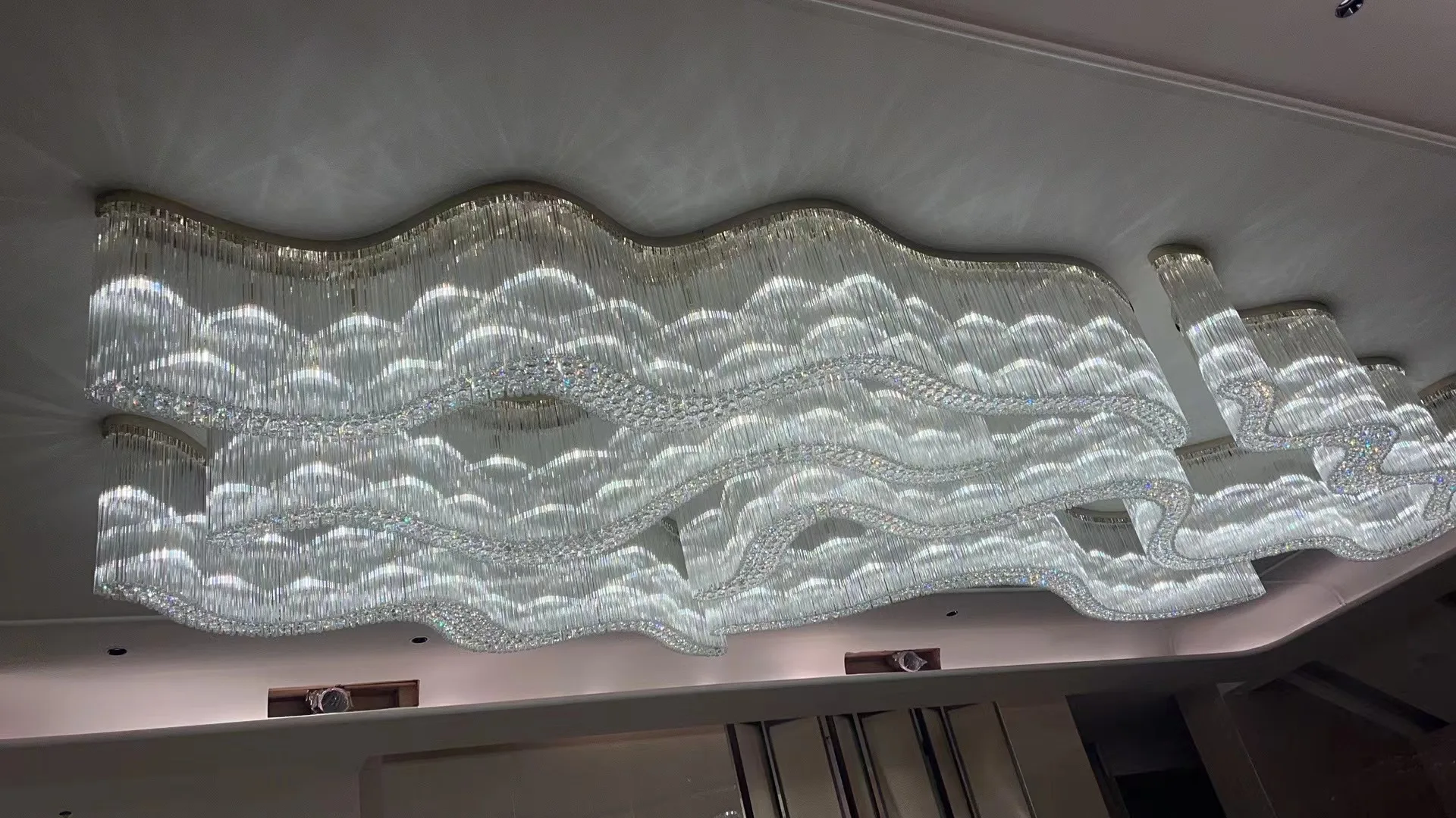 Modern Flush Mounted Irregular Hollow Crystal Tubes Chandelier Ceiling Light for Hotel Restaurant Banquet Hall Villa