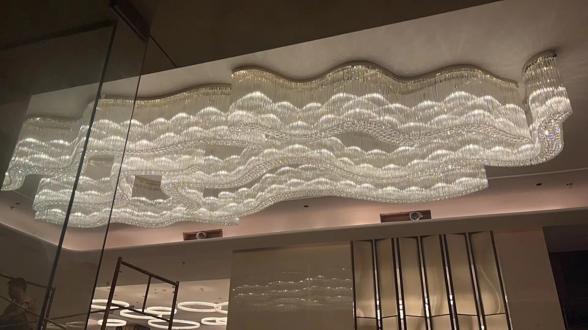 Zeal Lighting Hotel Lobby Hall Decorative Large Hanging Light Customized Long Gold Crystal Elegant Chandelier