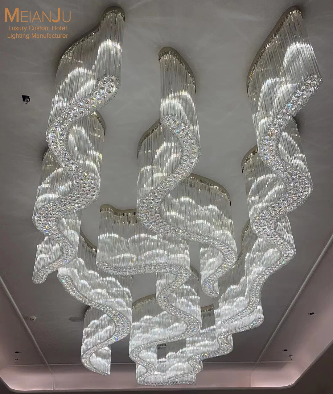 Wedding Hall Chandelier Hotel Hanging Pendant Light Customized Amber Crystal Chandelier Lighting for Lobby