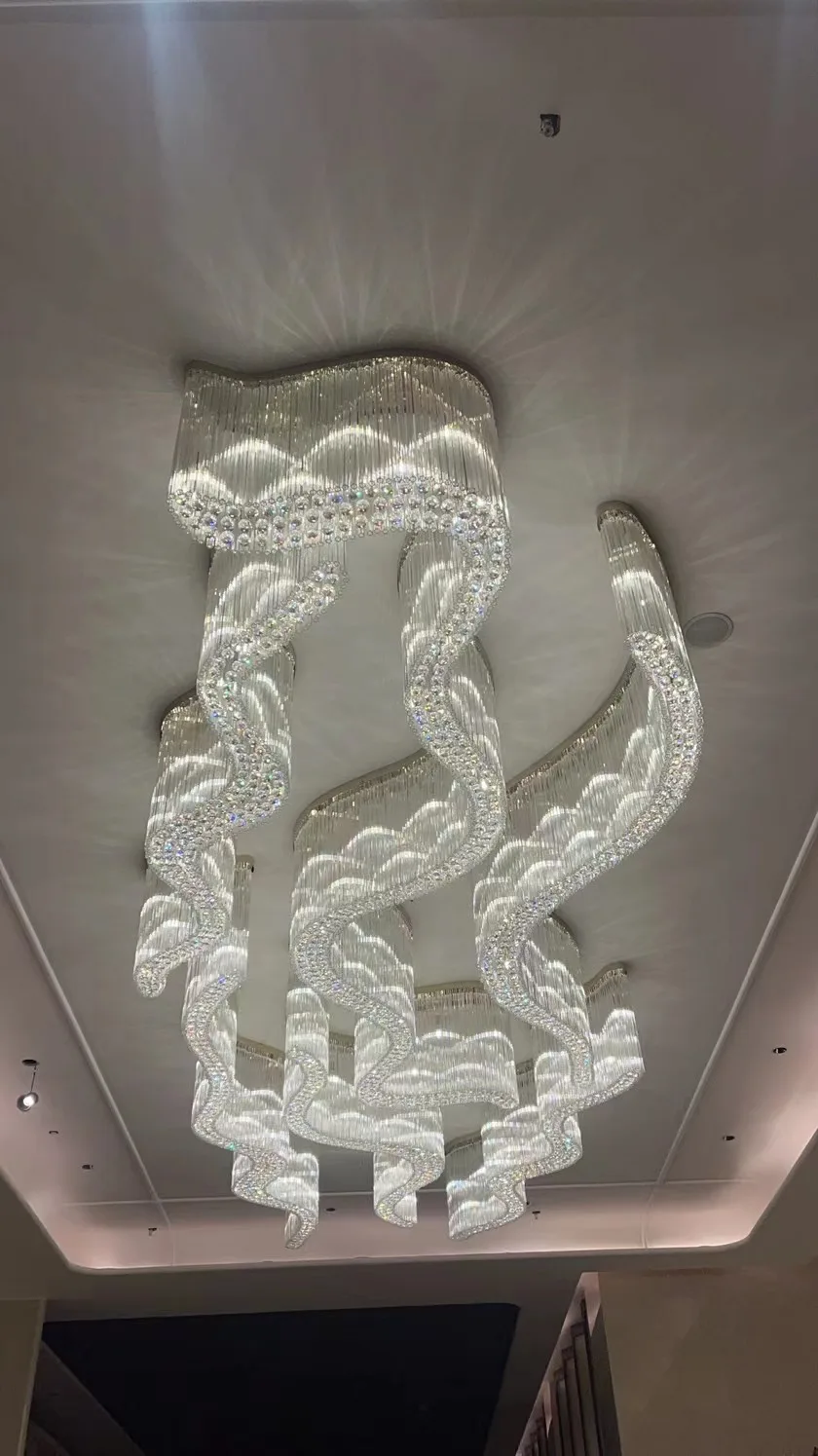 Zeal Lighting Long Stairwell Hanging Pendant Light Staircase Villa Duplex Stair High Ceiling Crystal Chandelier