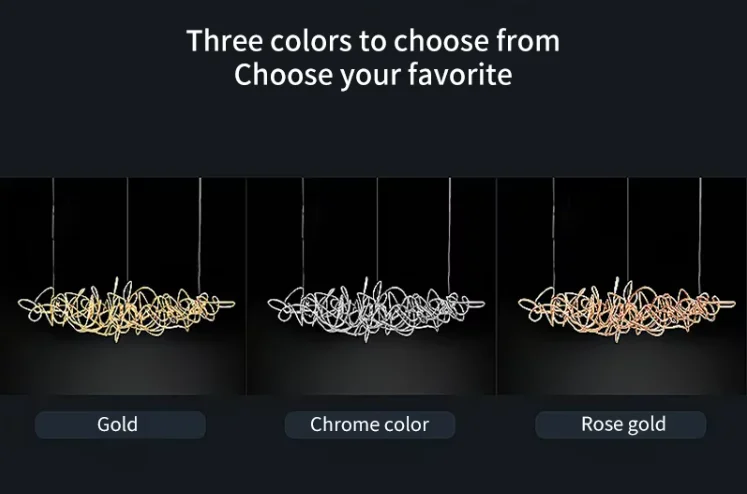 JACKSUN French-style Restaurant Bar Golden Long Lines Pendant Light Large Stainless Steel Chandelier LED 150cm Home Decor Lamp