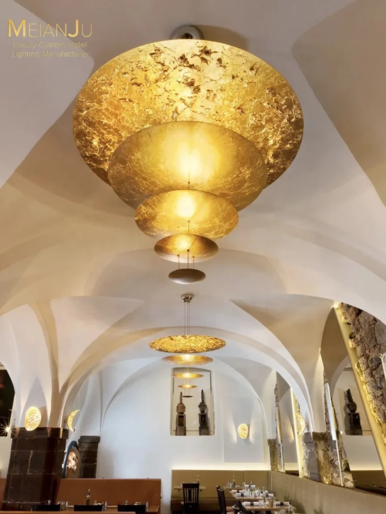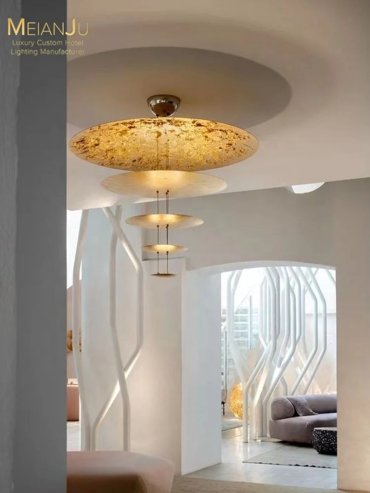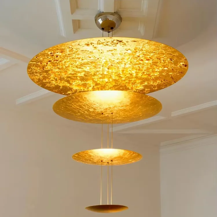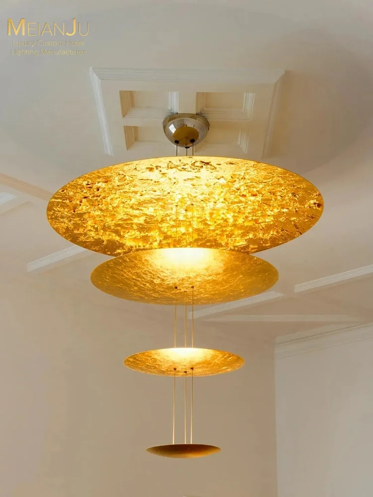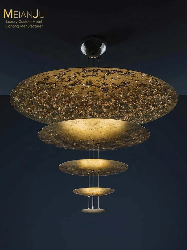 Italian Modern Luxury Minimalist Gold Foil Aluminum LED Chandelier 5-Year Warranty Warm White High Ceiling Large Living Room
