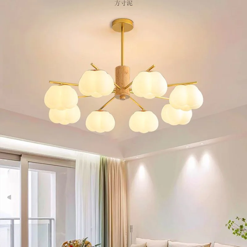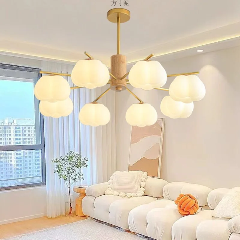 JACKSUN Living Room Chandelier Set Cream-Style Creative Cotton Pumpkin Lamp Modern Minimalist Dining Room Bedroom Light