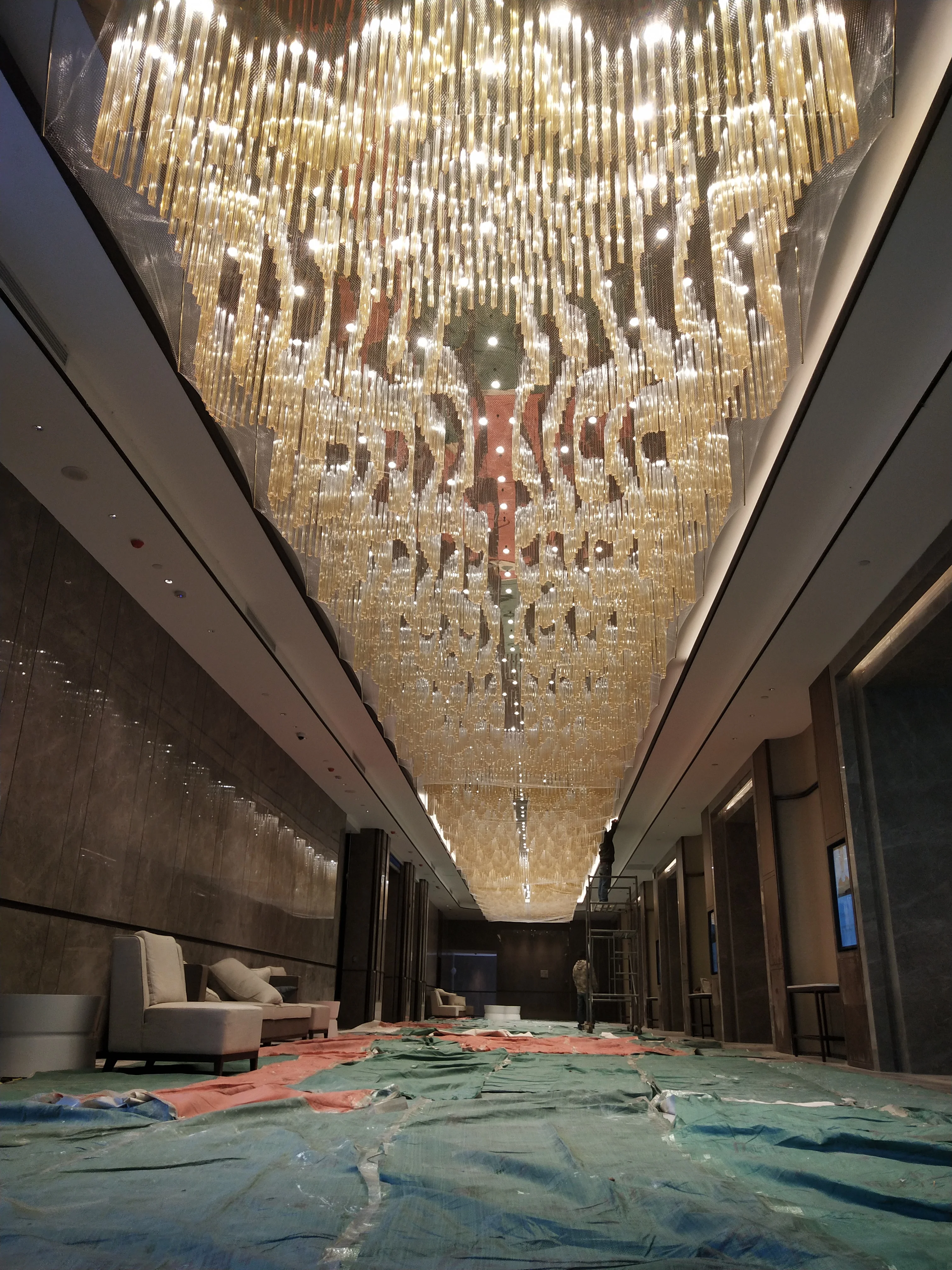 Zeal Lighting Hotel Lobby Hall Decorative Large Hanging Light Customized Long Gold Crystal Elegant Chandelier