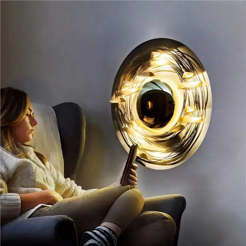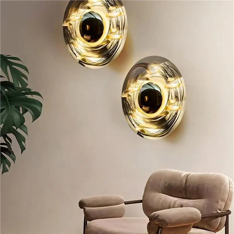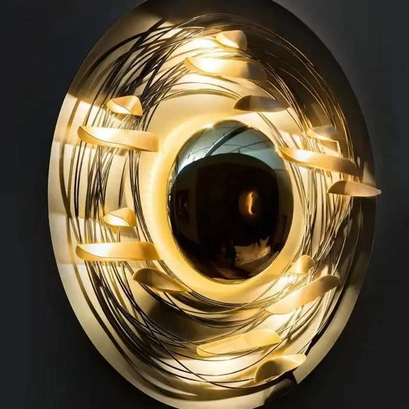 Creative Gold Decorative Hanging LED Wall Zhongshan Artist-Designed for Living Room Entrance for Model Sofa Background Iron