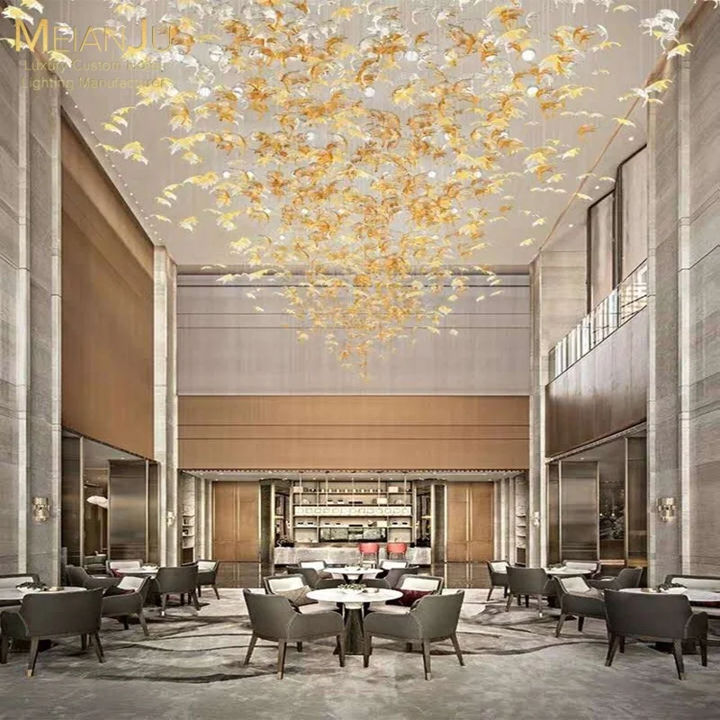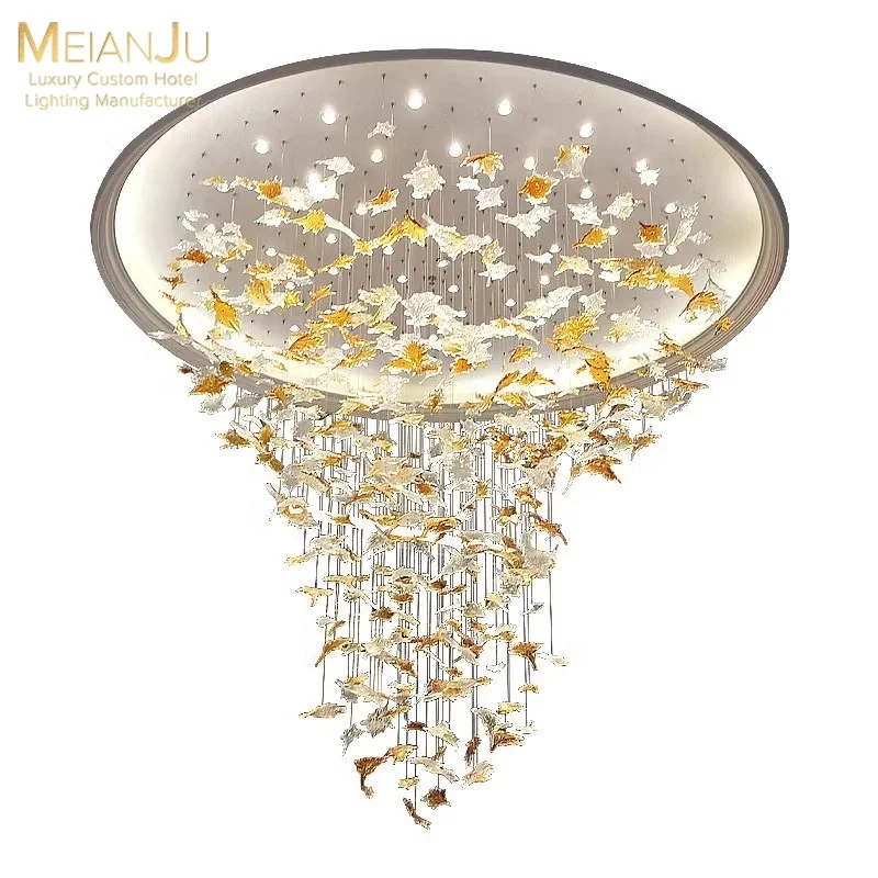 Customizable Large Glass Maple Leaf Chandelier for Room Decor-Self-Built Hotels Shopping Malls Sales Department Sand Pendant