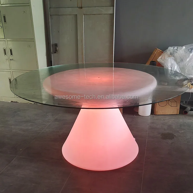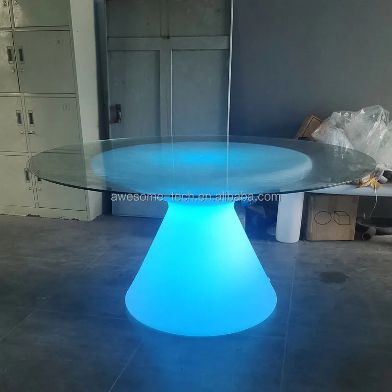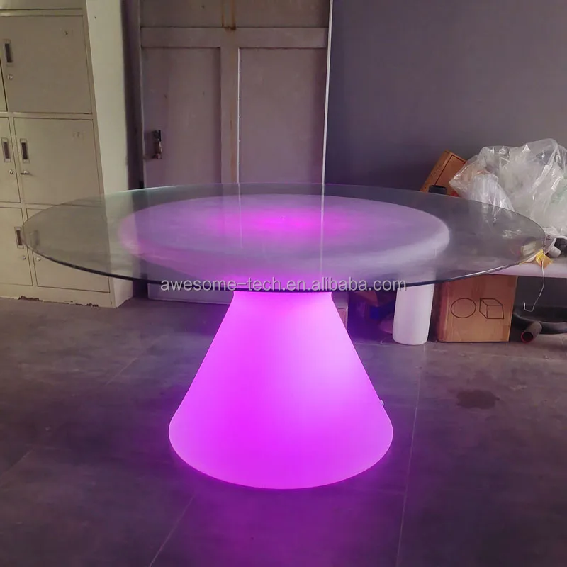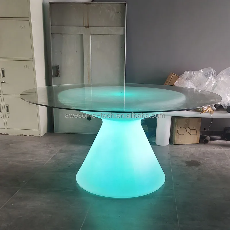 Modern LED Light-Up Tables Glow Round Wedding Dinner with Plastic Base Rechargeable 8 Seater for Hotel Dining Room Furniture