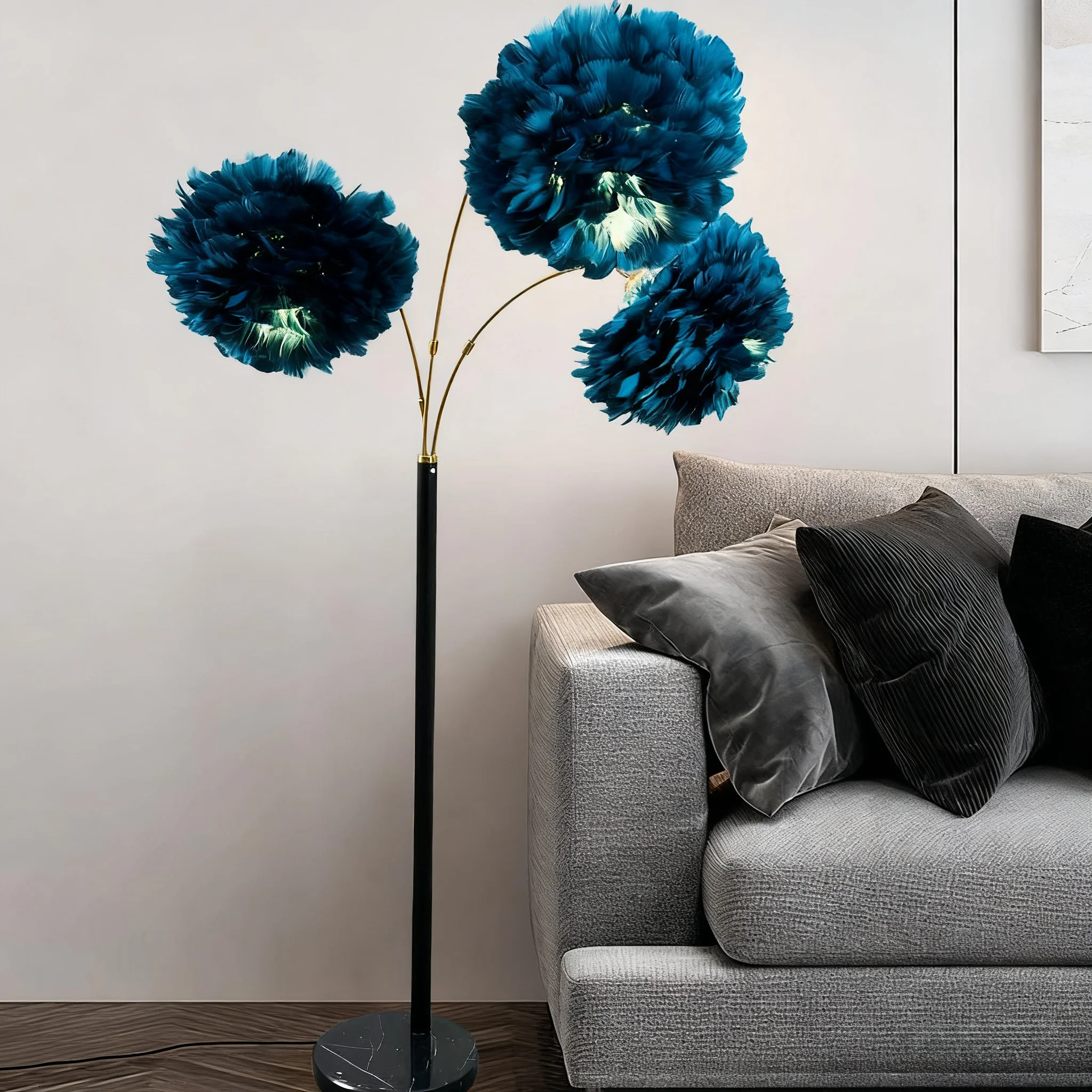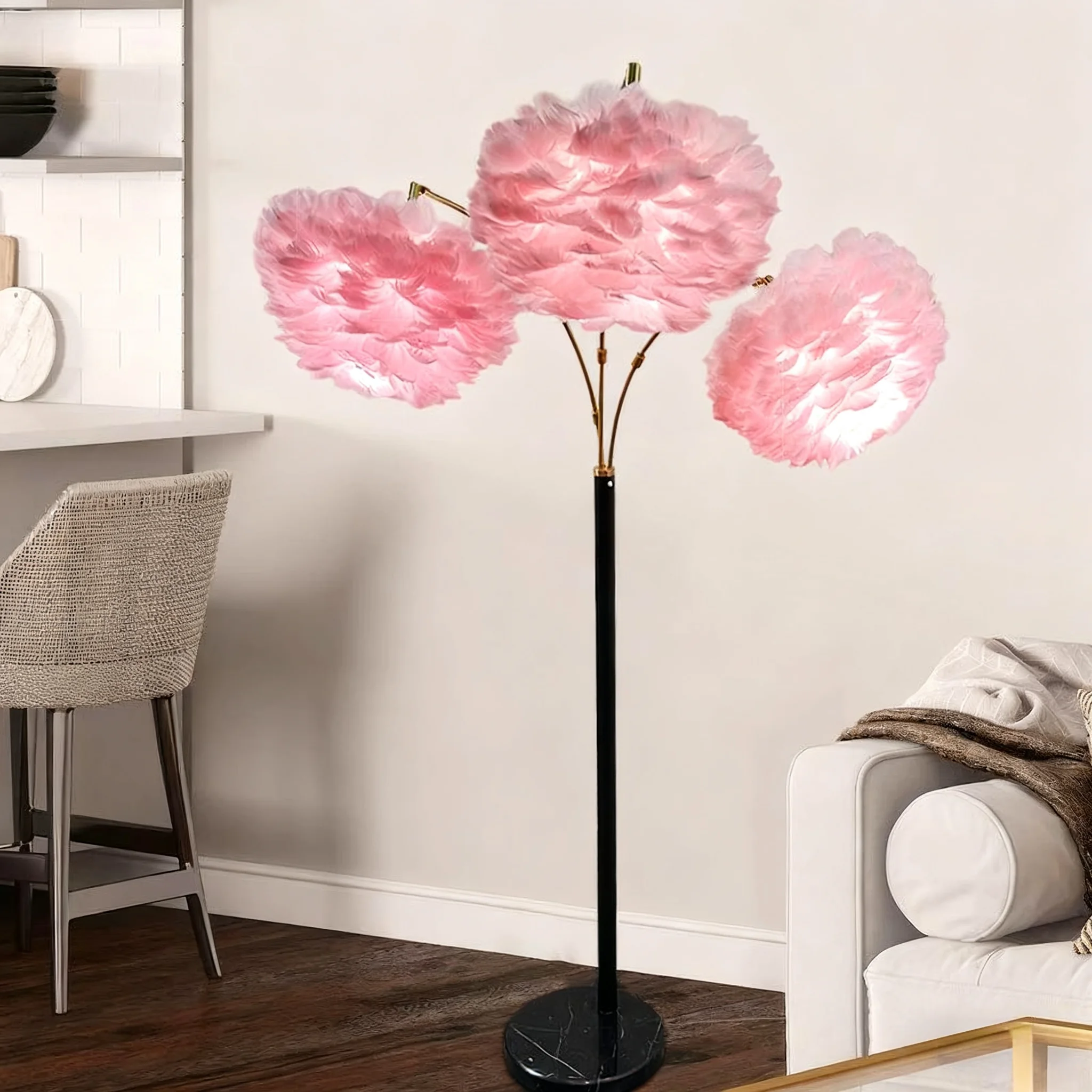 JACKSUN LED Living Room Floor Lamp Ins-style Simple Bedroom Bedside Lamp with Iron Body Feather Sofa Lamp