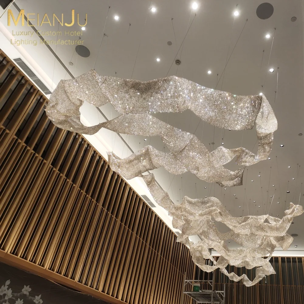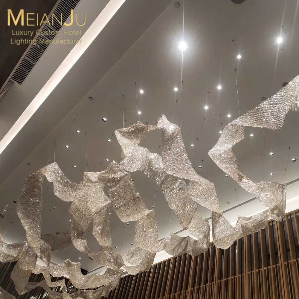 Wedding Hall Chandelier Hotel Hanging Pendant Light Customized Amber Crystal Chandelier Lighting for Lobby