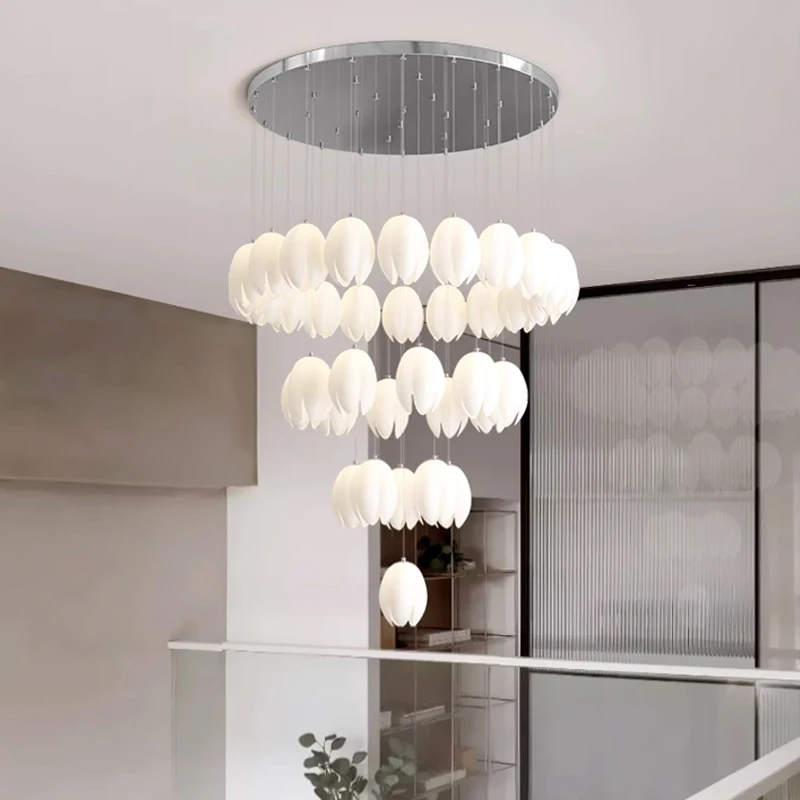 Modern Nordic Minimalist Double-Story Cream-Colored Rotatable Pendant Light Long Hanging Branch-Shaped Chandelier