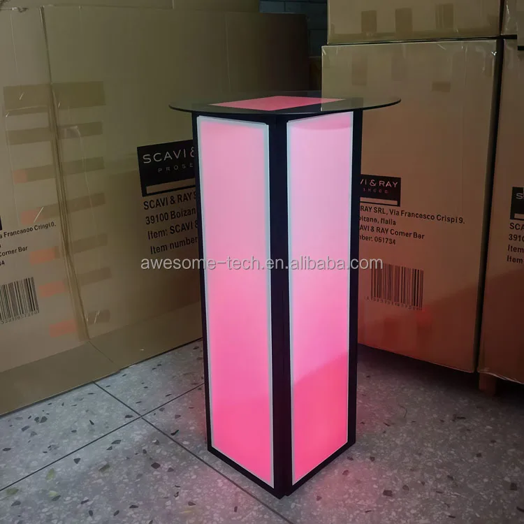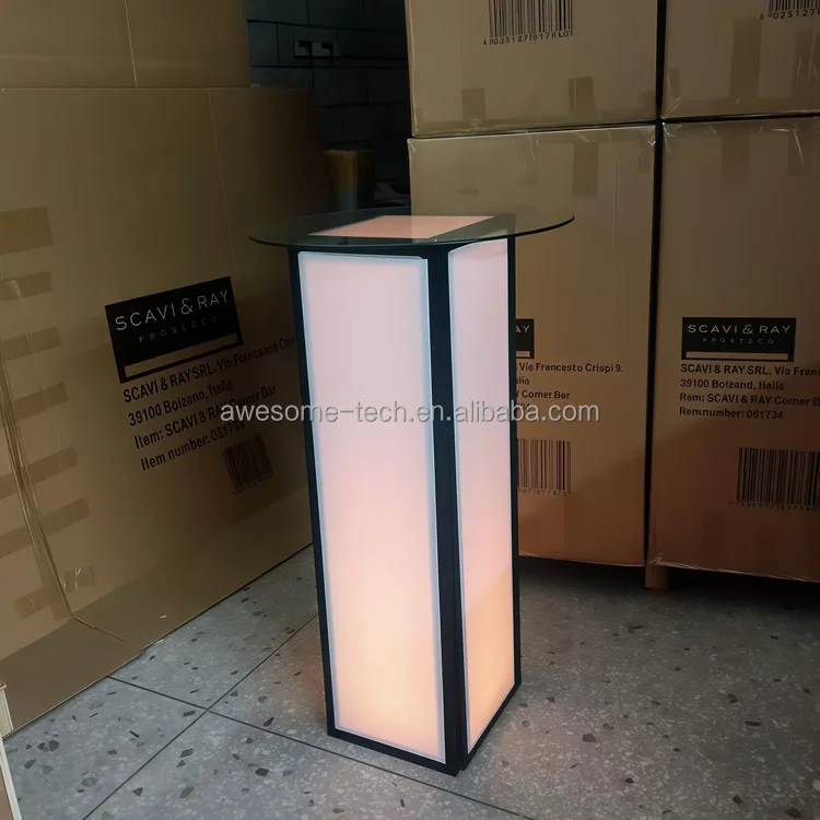 American Style Contemporary Folded Highboy Cocktail Table with Glass Top LED Lighting for Hotel Use