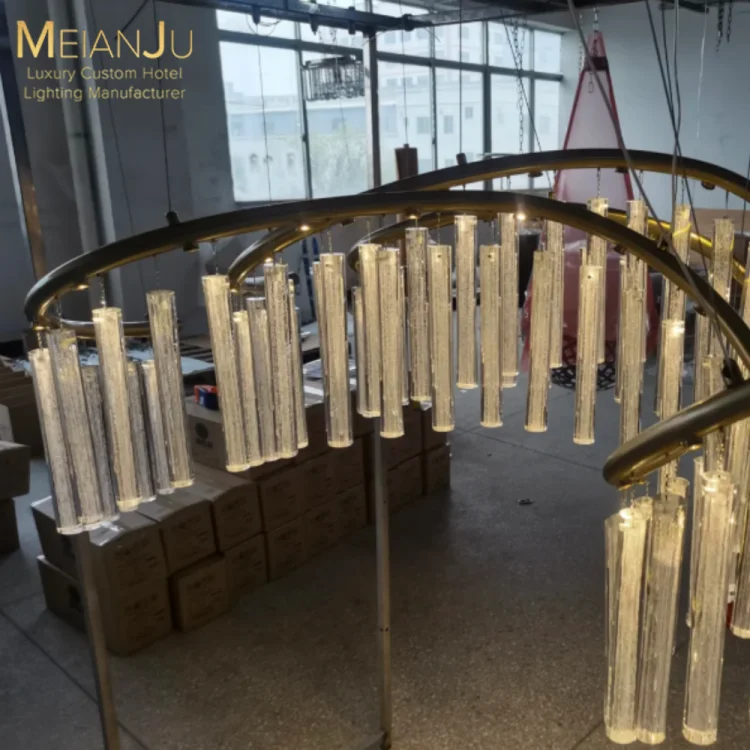 Wedding Hall Chandelier Hotel Hanging Pendant Light Customized Amber Crystal Chandelier Lighting for Lobby