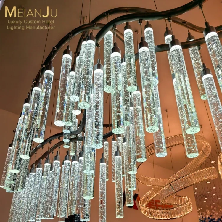 Contemporary Luxe Premium Crystal Chandelier with Bubble Column Design Latest Edition for Hotel Banquet Halls